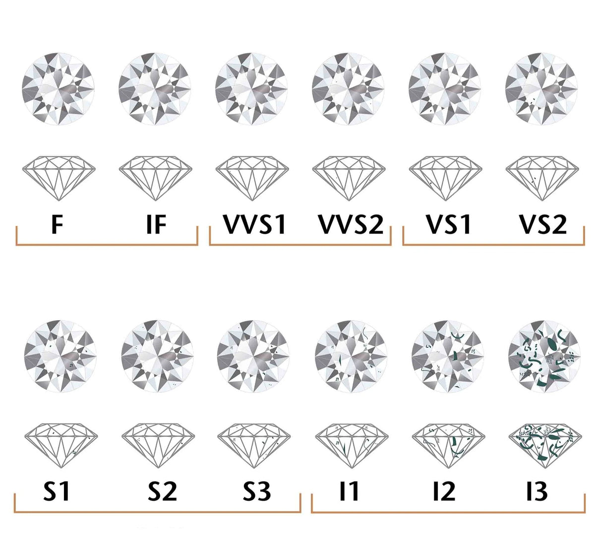Diamond clarity measures the presence of natural inclusions and surface blemishes formed during the diamond’s creation. Clarity grades range from Flawless (FL) and Internally Flawless (IF) to Very Very Slightly Included (VVS), Very Slightly Included (VS), Slightly Included (SI), and Included (I). While completely flawless diamonds are extremely rare, many buyers select an eye-clean diamond (a stone where inclusions are invisible without magnification). Diamonds in the VS or SI clarity range often provide exceptional value while still looking flawless in a diamond engagement ring.