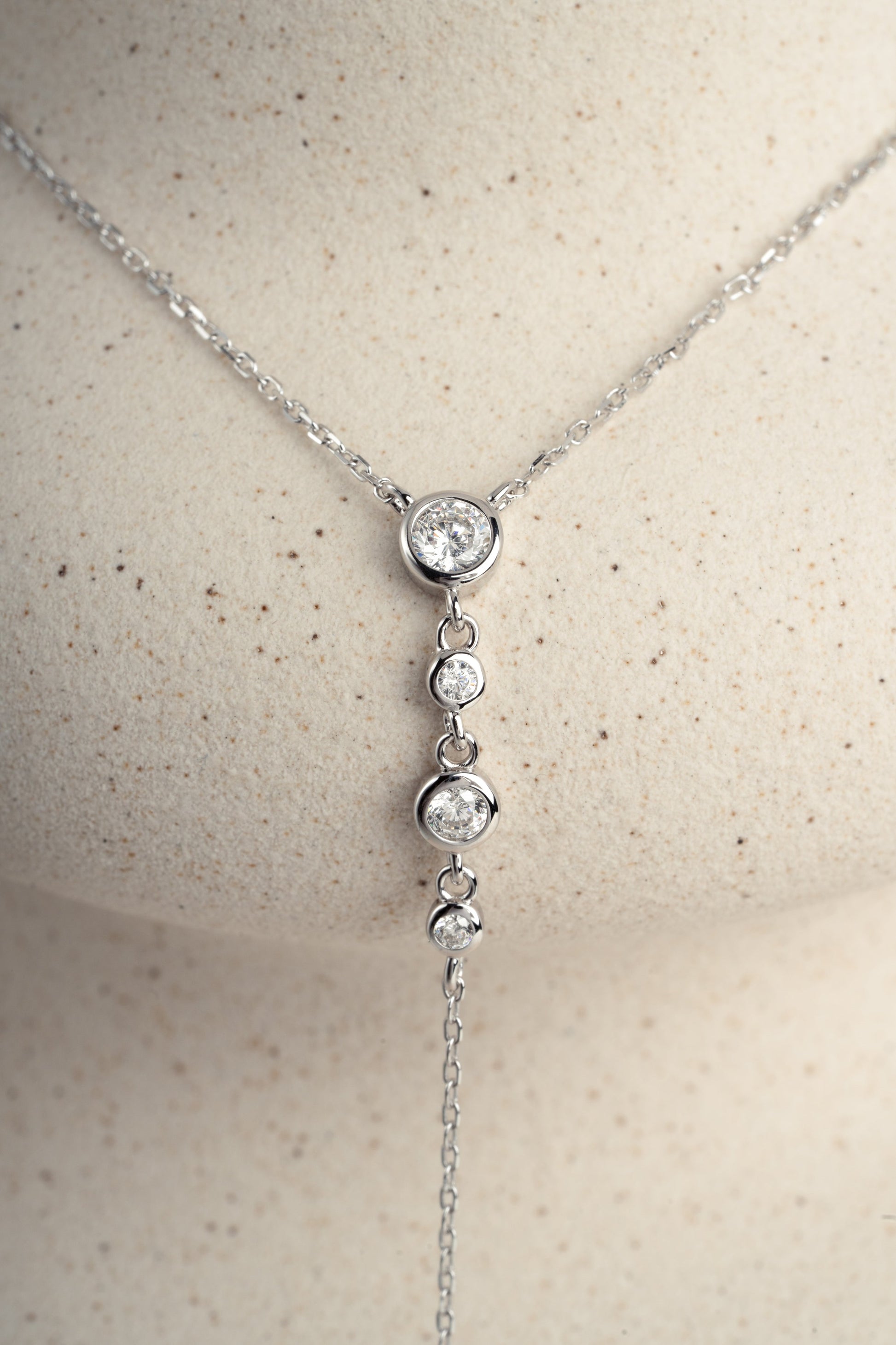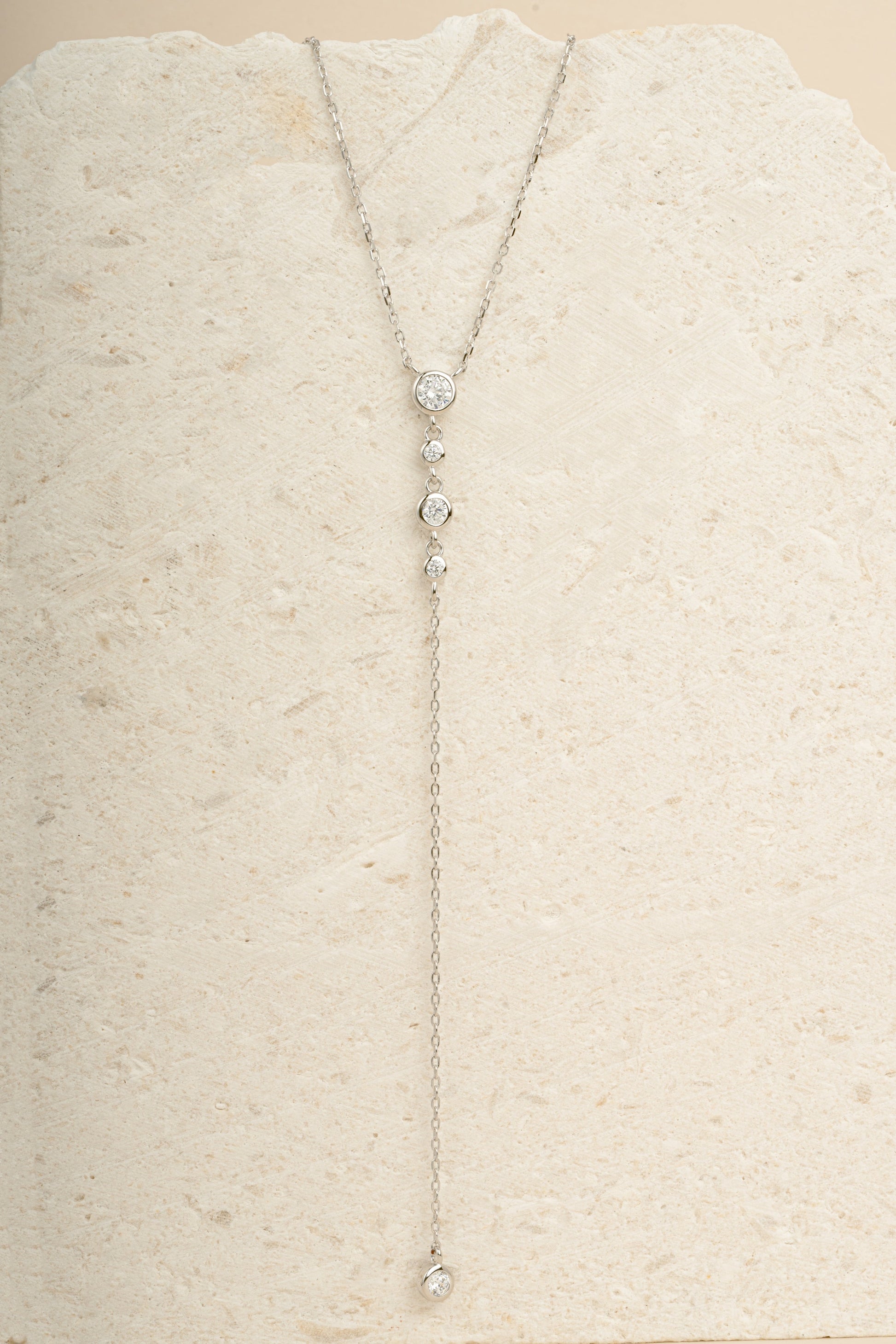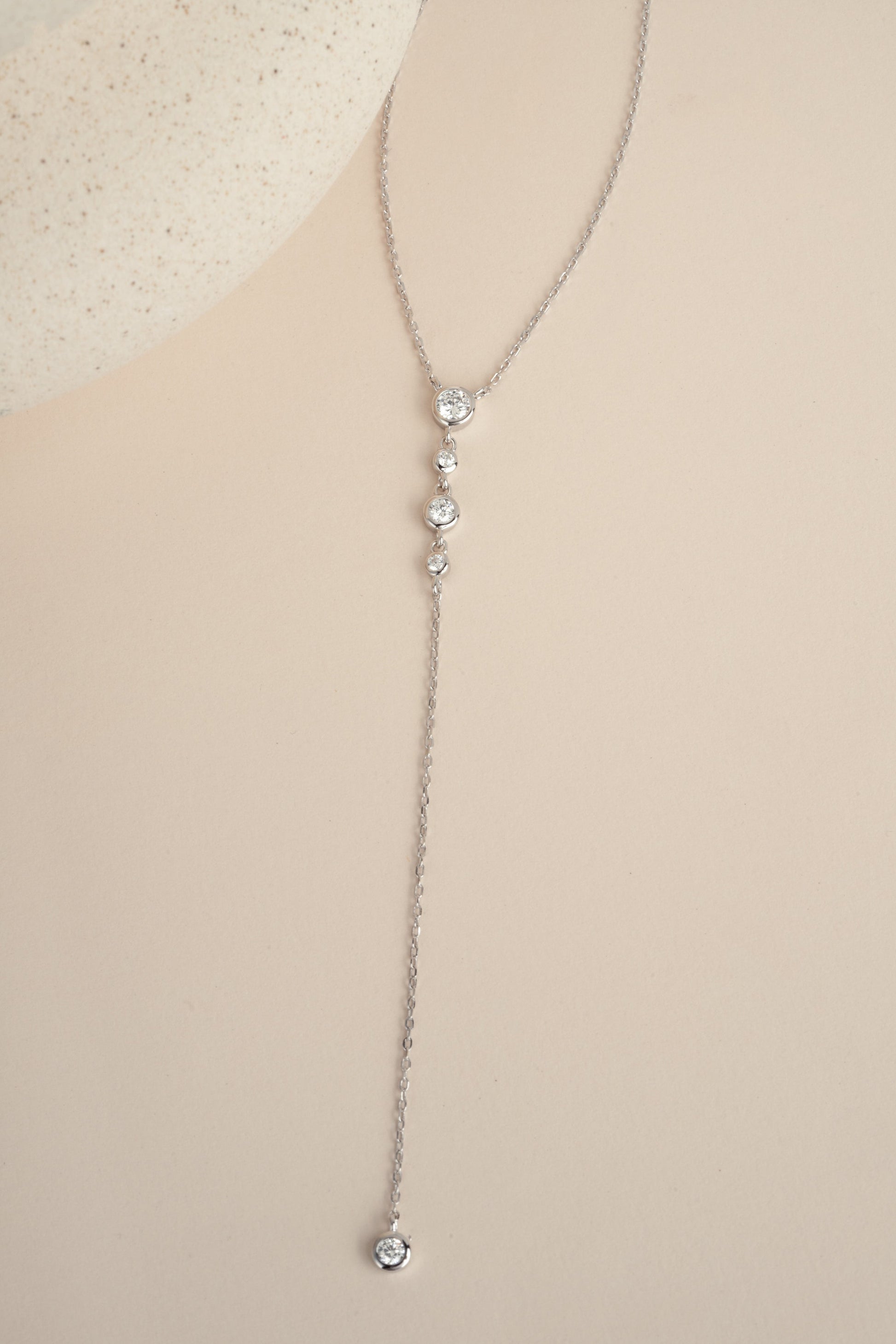 0.3 CT Round Moissanite Diamond Bezel Lariat Necklace