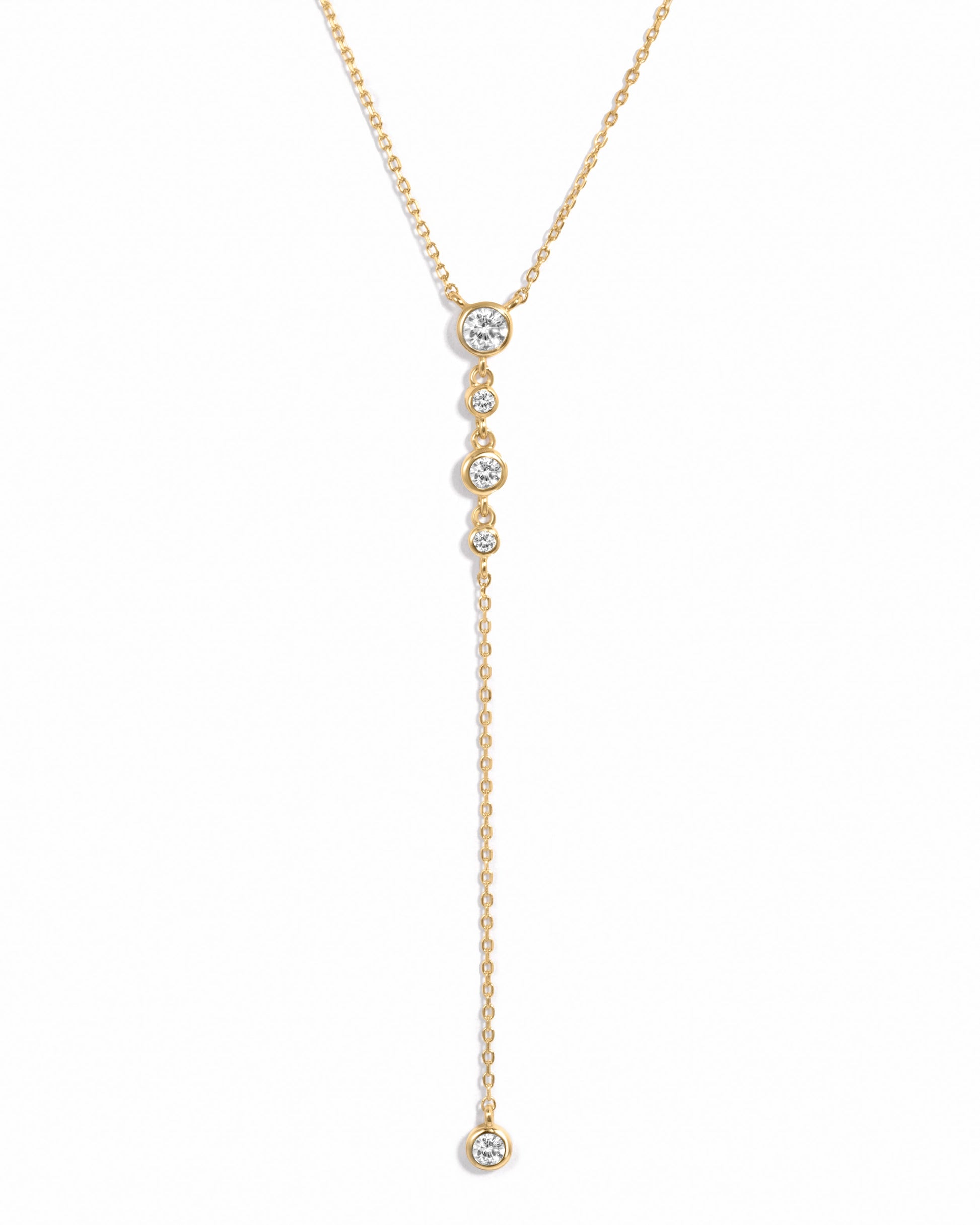 Discover timeless elegance with this Lariat Round Diamond Necklace, crafted to perfection in your choice of solid 14K or 18K gold. Designed for effortless sophistication, necklace features a Round Moissanite Diamond, held in a secure setting to highlight its fire and sparkle.