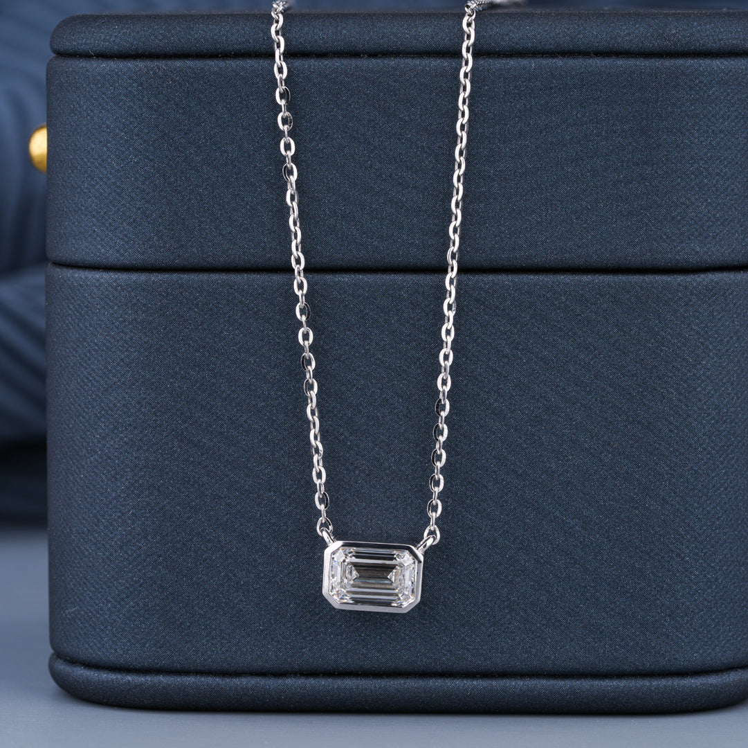 0.5 - 5.00 CT Emerald Cut Moissanite Diamond Bezel Pendant Necklace