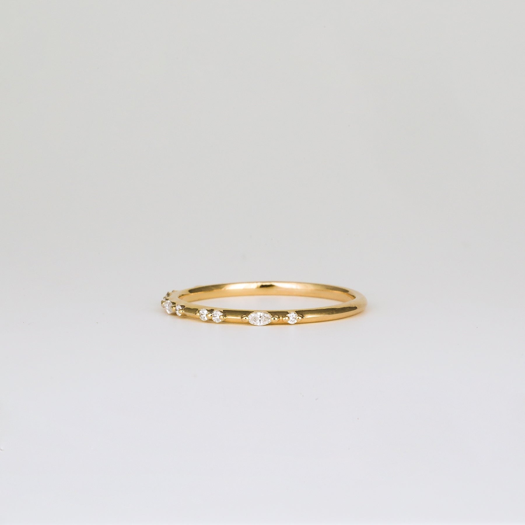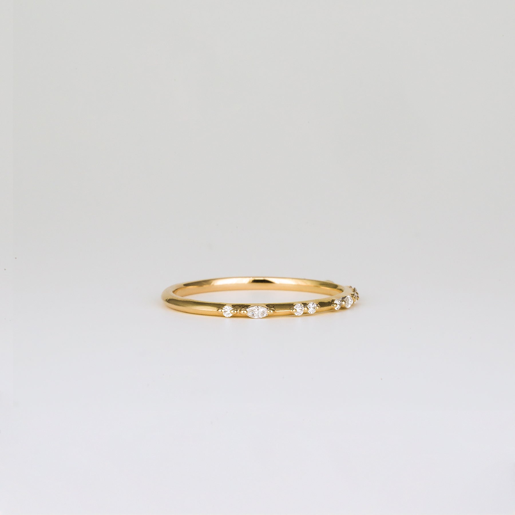 ✦ The Band Displayed in the Image Highlights a 0.1 TCW Round & Marquise CVD Diamond Dainty Wedding Band.