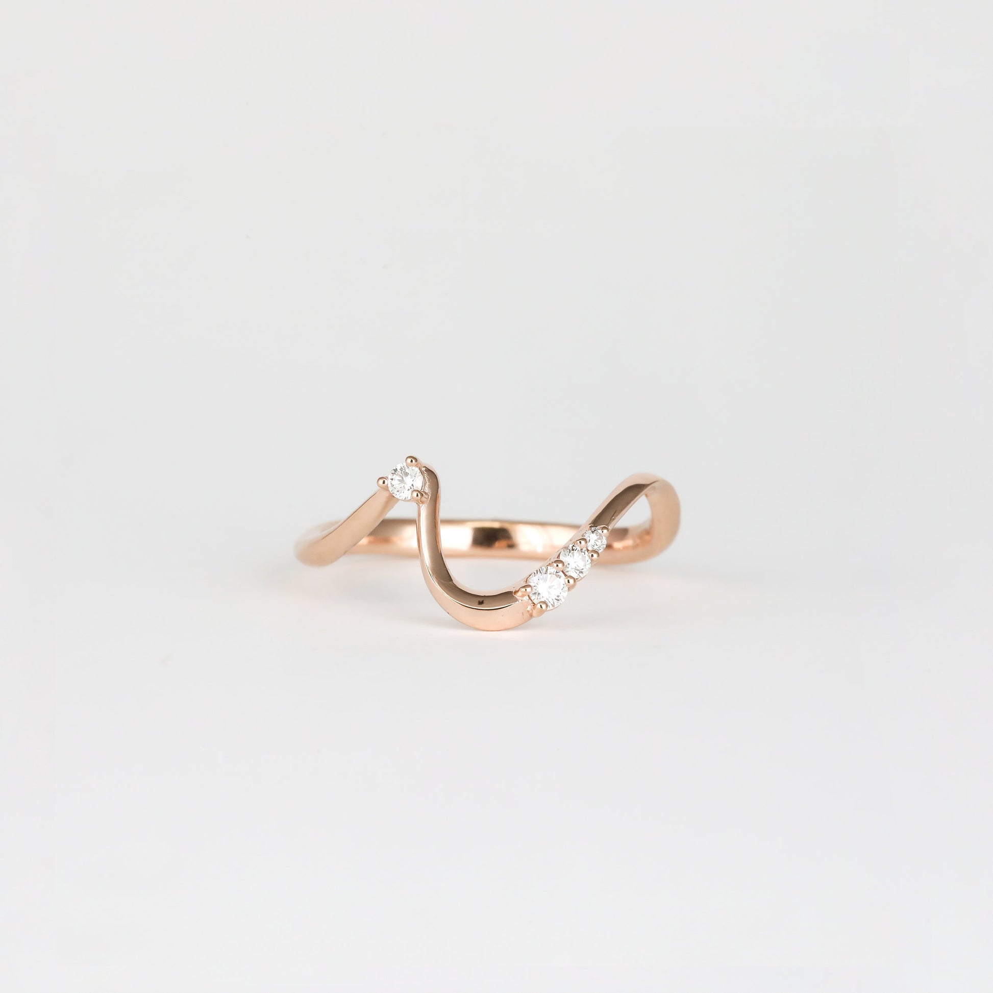 ✦ The Band Displayed in the Image Highlights a 0.11 TCW Round CVD Diamond Curved Unique Style Scattered Wedding Band.