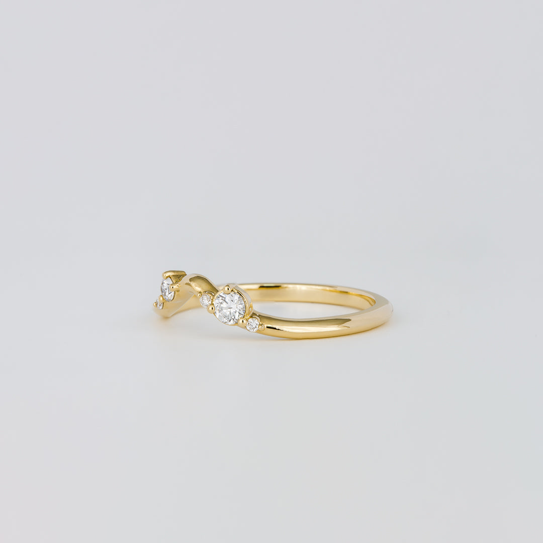 ✦ The Band Displayed in the Image Highlights a 0.12 TCW Round CVD Diamond Curved Scattered Wedding Band.