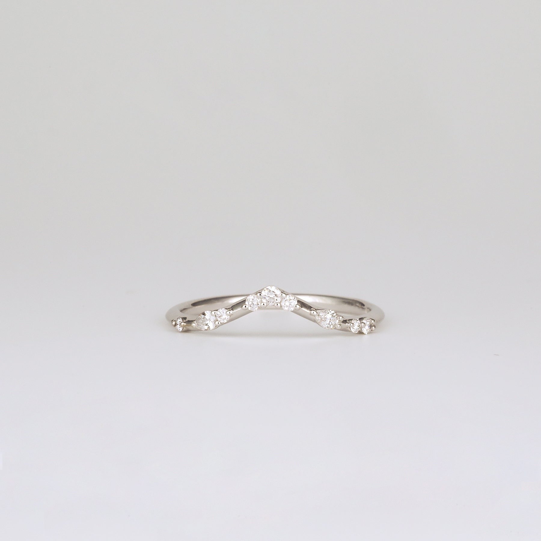 ✦ The Band Displayed in the Image Highlights a 0.12 TCW Round & Pear CVD Diamond Curved Scattered Wedding Band.