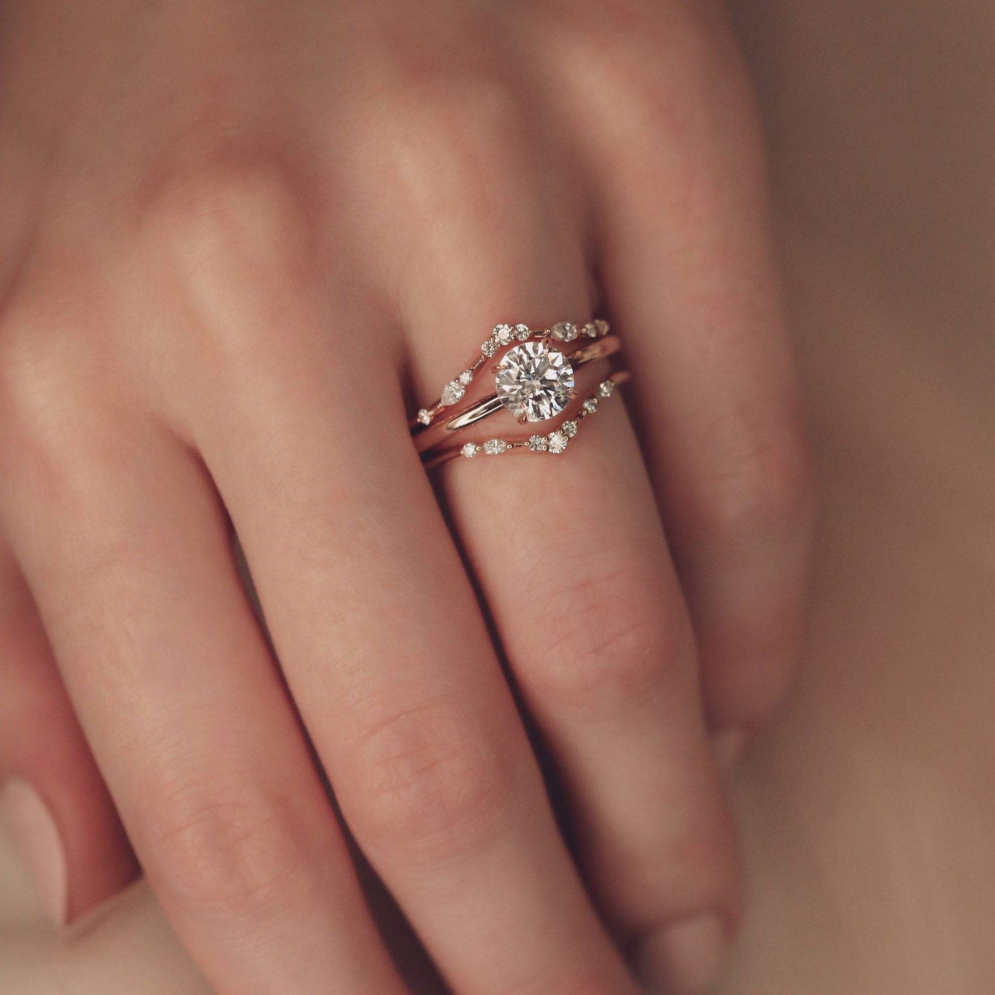 0.07 TCW Round CVD Diamond Curved Organic Scattered Wedding Band