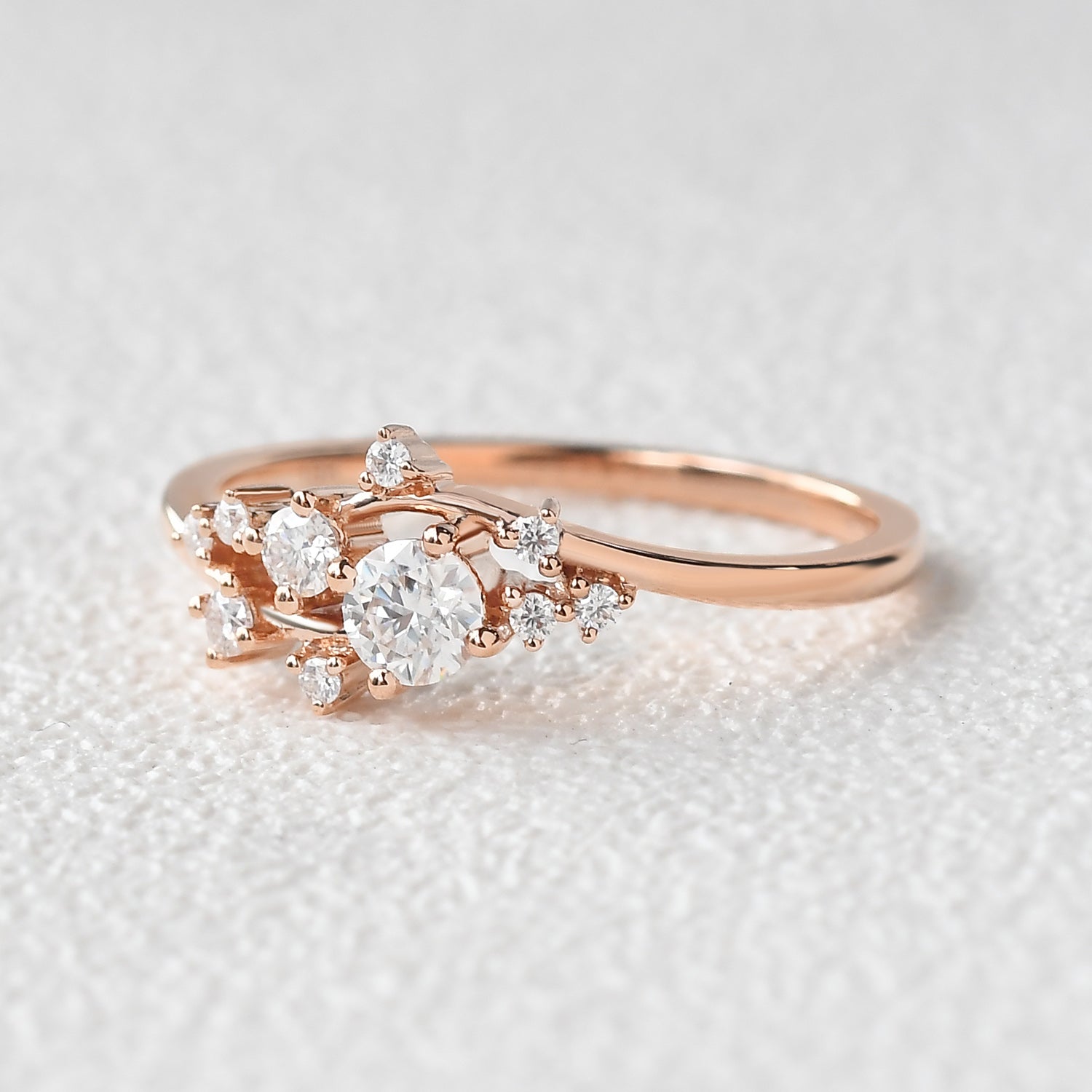 ✦ Cherish your love story with this captivating Cluster band, adorned with 0.32 TCW Round Cut Moissanites that shimmer with brilliance and grace.