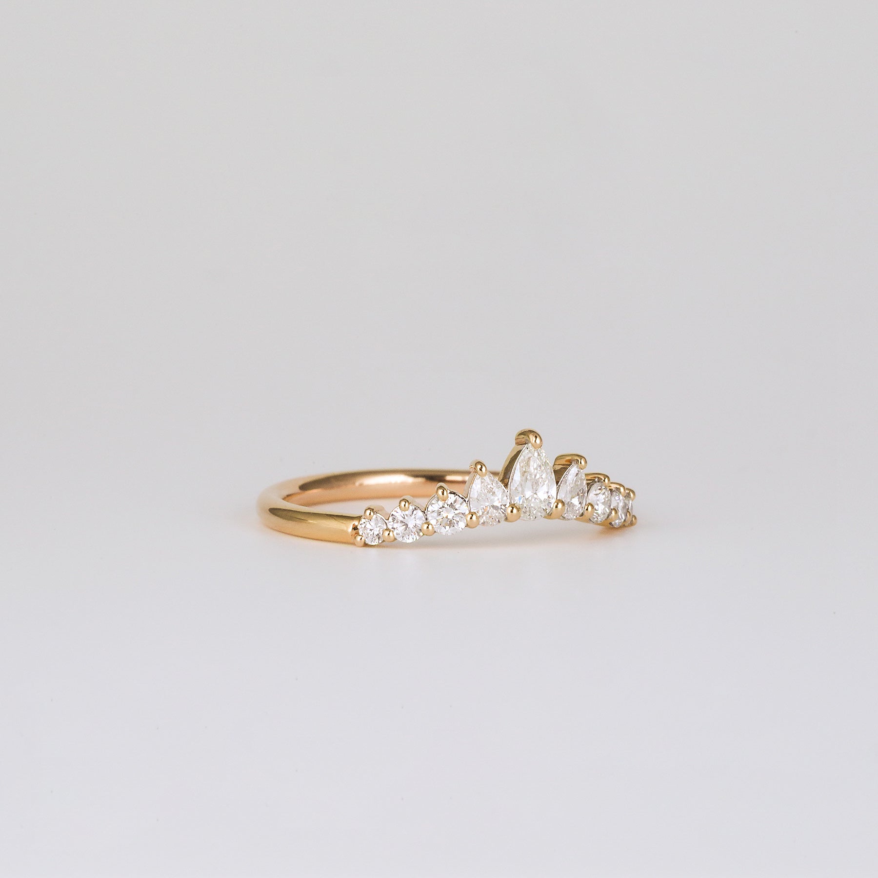 ✦ The Band Displayed in the Image Highlights a 0.38 TCW Round & Pear CVD Diamond Chevron Wedding Band.