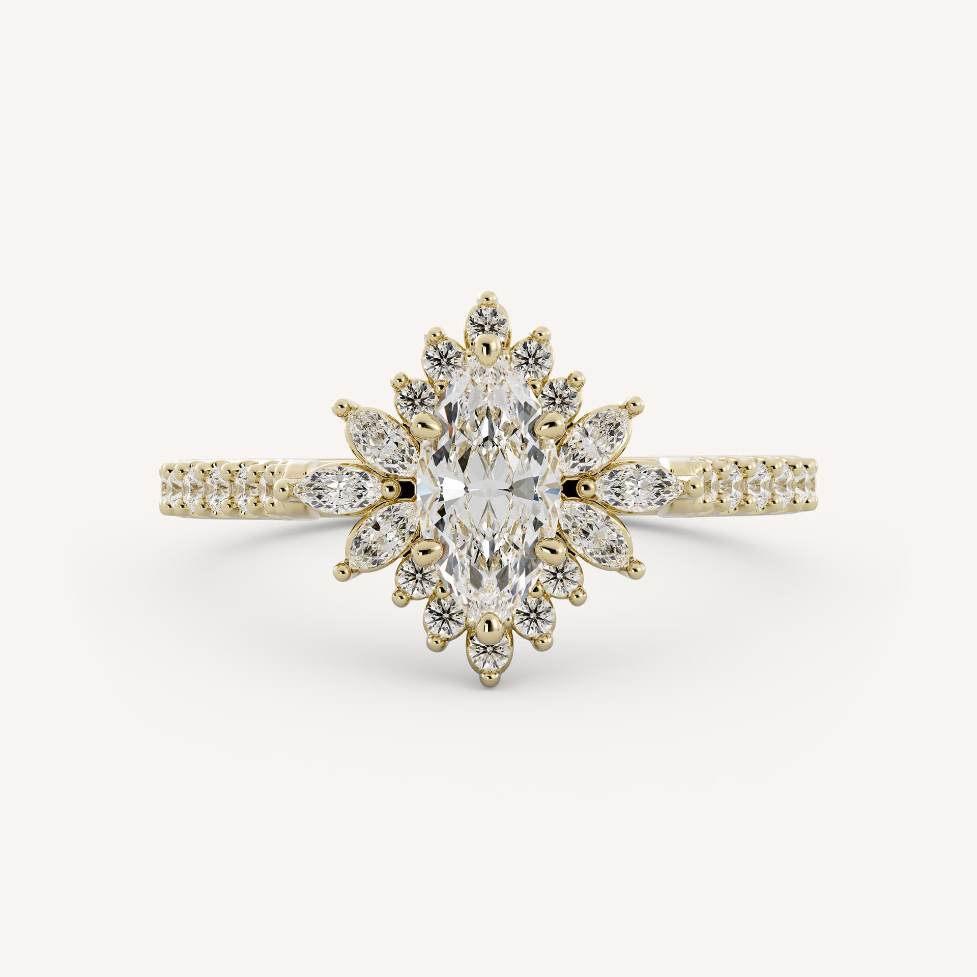 ✦ The Ring Displayed in the Image Highlights a 0.5 CT - 1 CT Marquise Cut Lab grown Diamond Halo & Pave Setting Engagement Ring.