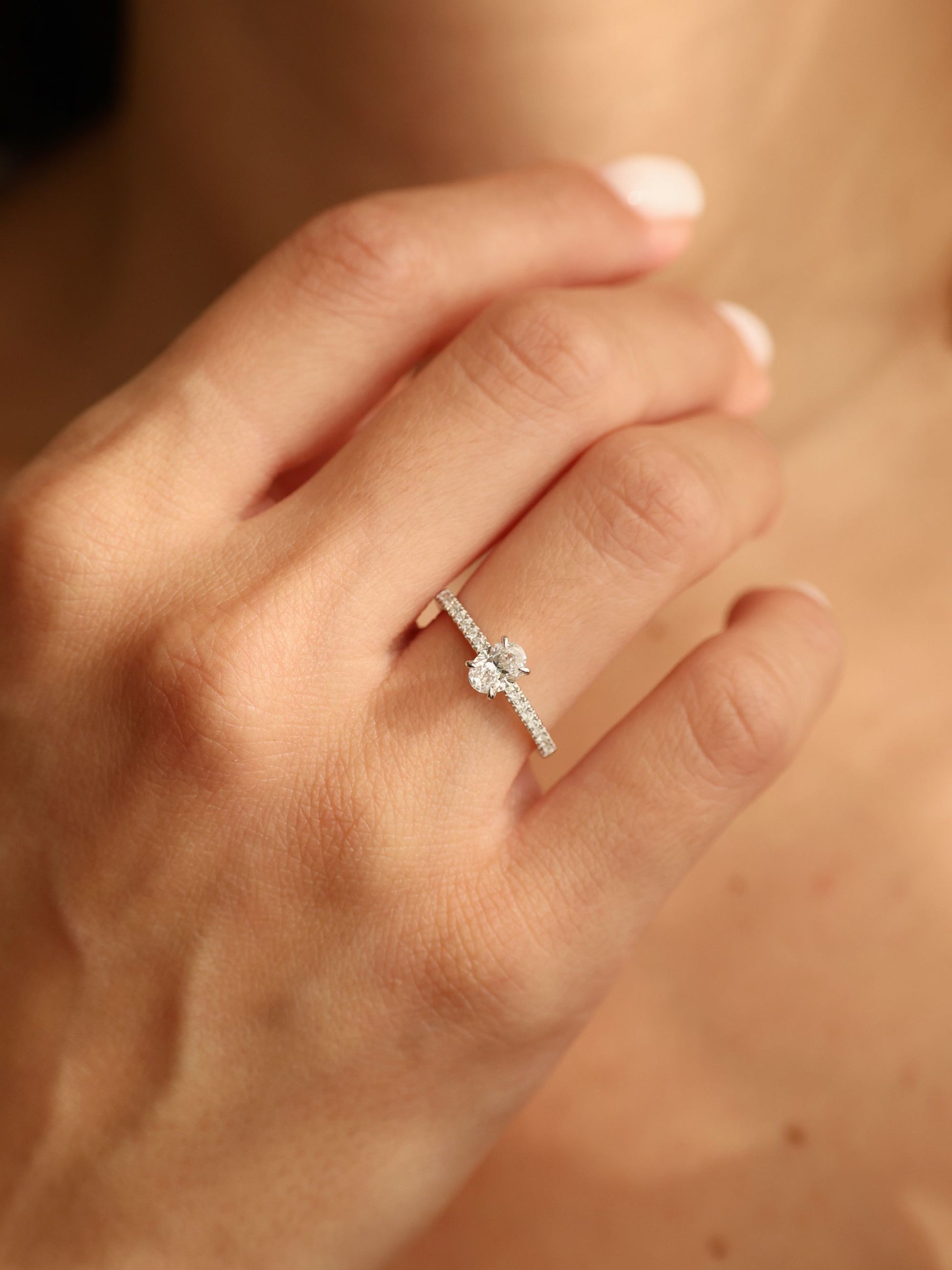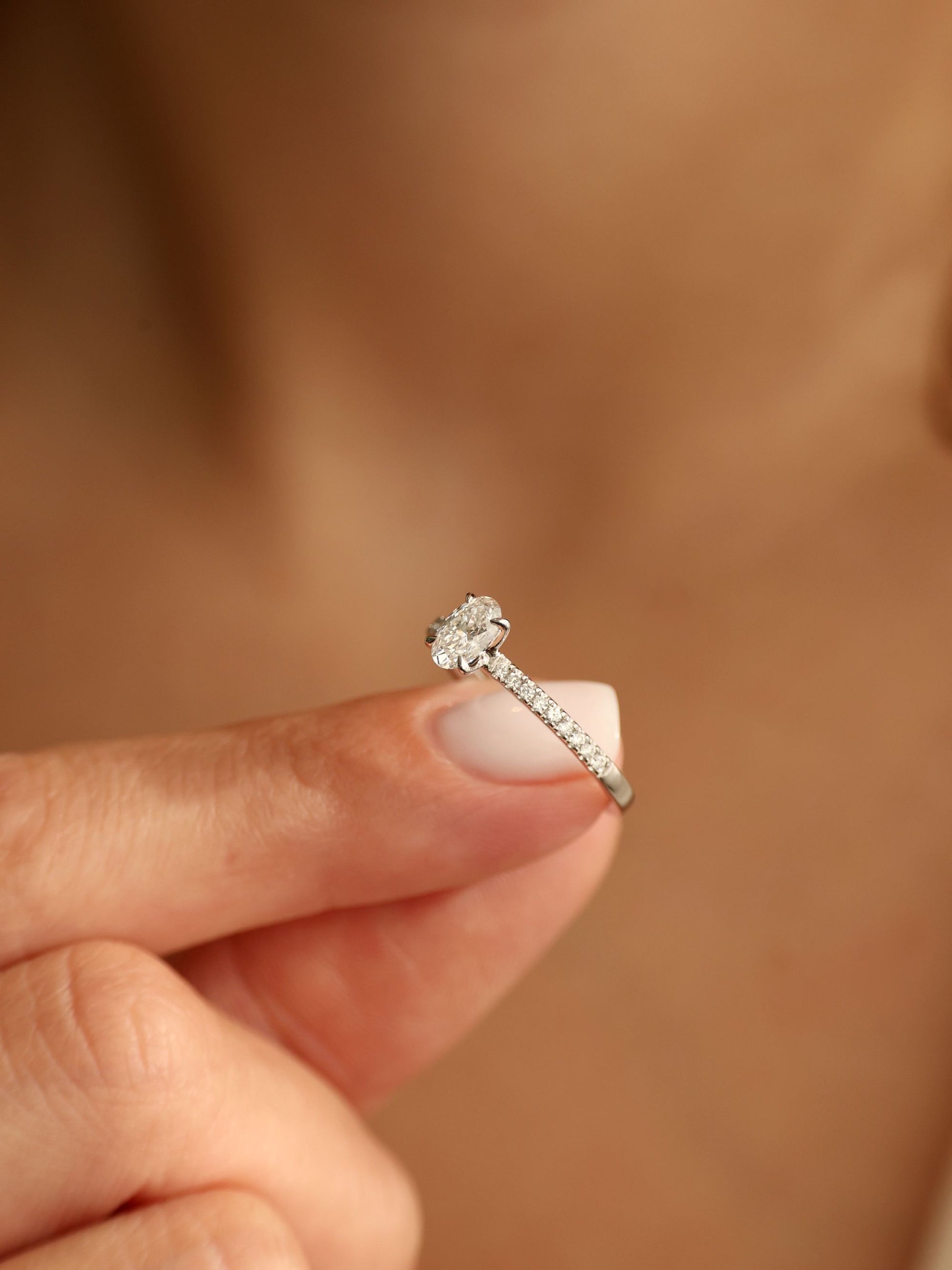 0.5 CT - 2.5 CT Oval Cut Lab grown Diamond Pave Engagement Ring