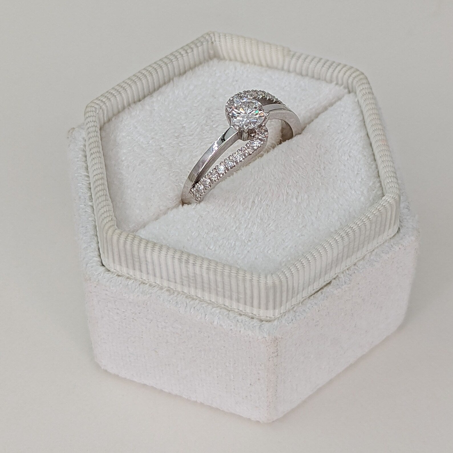 0.6 CT Round Cut Pave Unique Style Moissanite Engagement Ring