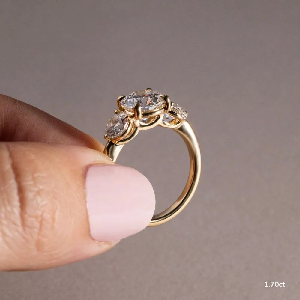 1.0 CT - 1.7 CT Round Cut Three Stone Moissanite Engagement Ring