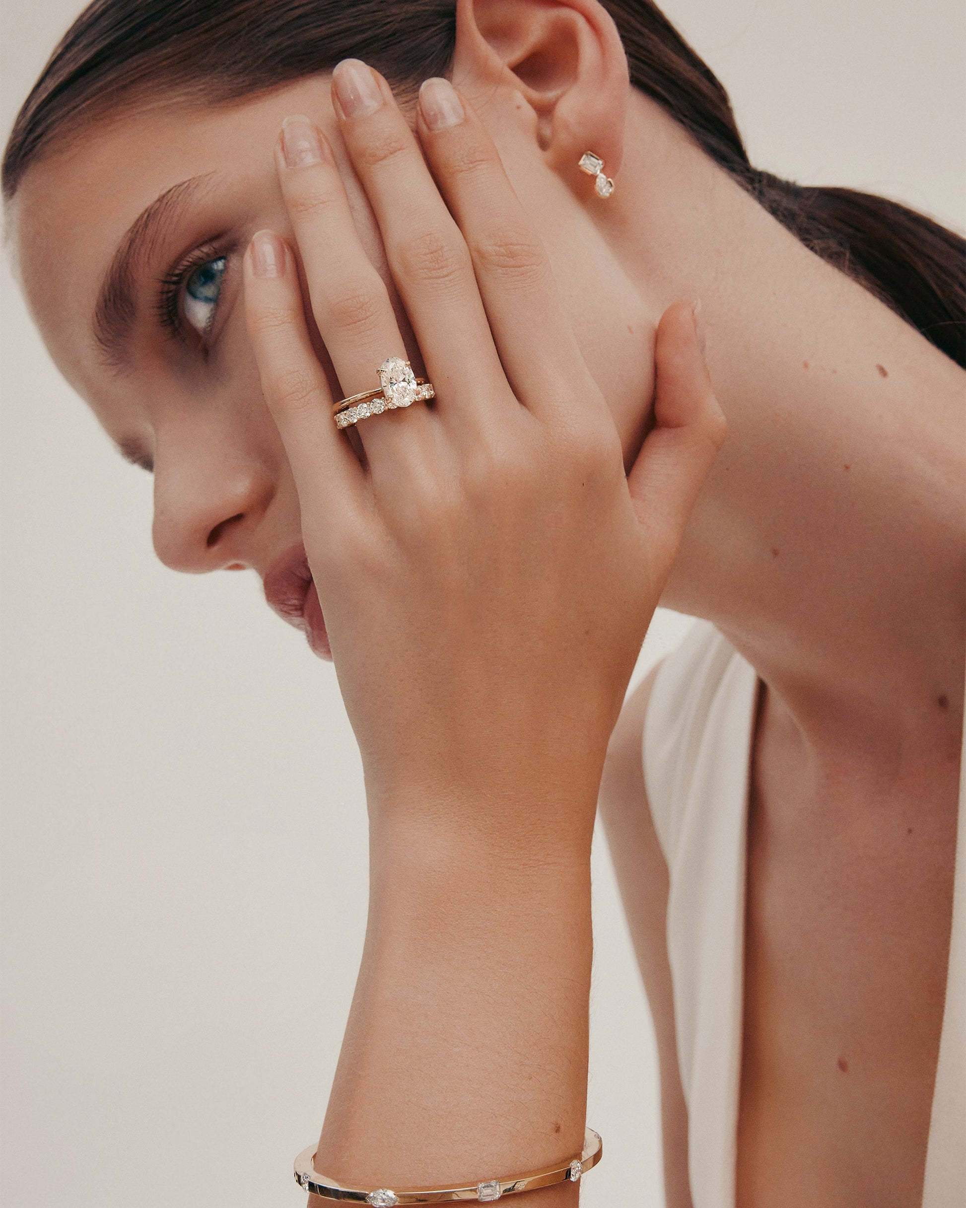 Pair your ring with our handpicked bands, designed to sit in harmony with your chosen style.