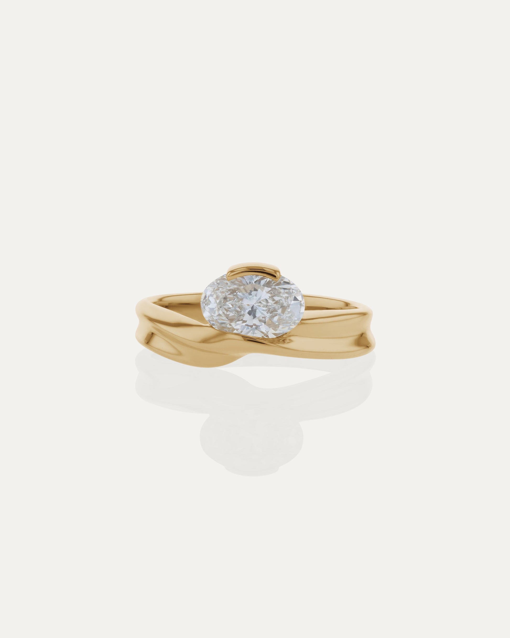 ✦ The Ring Displayed in the Image Highlights a 1.03 CT Oval Cut Lab grown Diamond Sculptural Band Solitaire Engagement Ring.