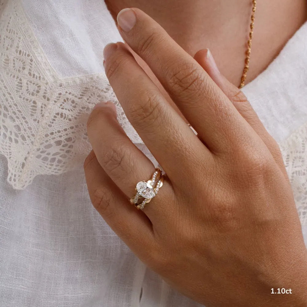 1.1 CT - 2 CT Oval Cut Twisted Pave Moissanite Engagement Ring