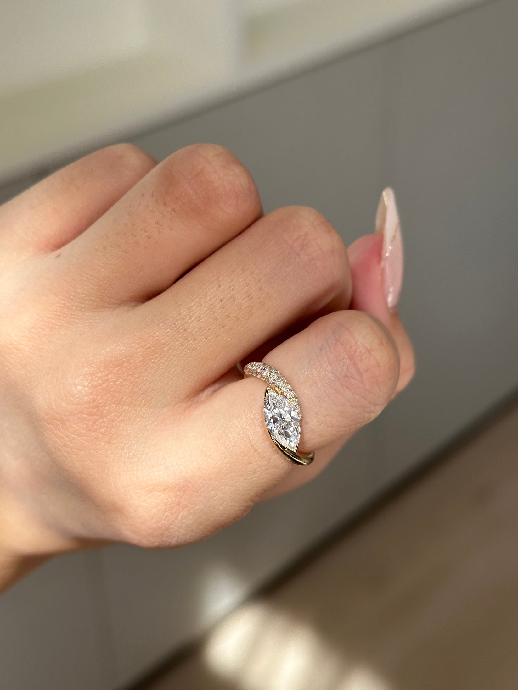 ✦ The Ring Displayed in the Image Highlights a 1.1 CT Marquise Cut Lab grown Diamond Twisted Pave Engagement Ring.
