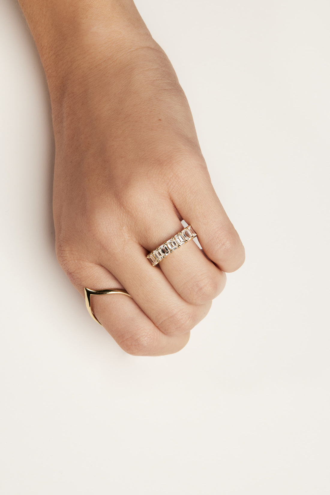 ✦ Cherish your love story with this captivating Half Eternity band with Shared Prong, adorned with 1.1 TCW Emerald Cut Moissanites that shimmer with brilliance and grace.