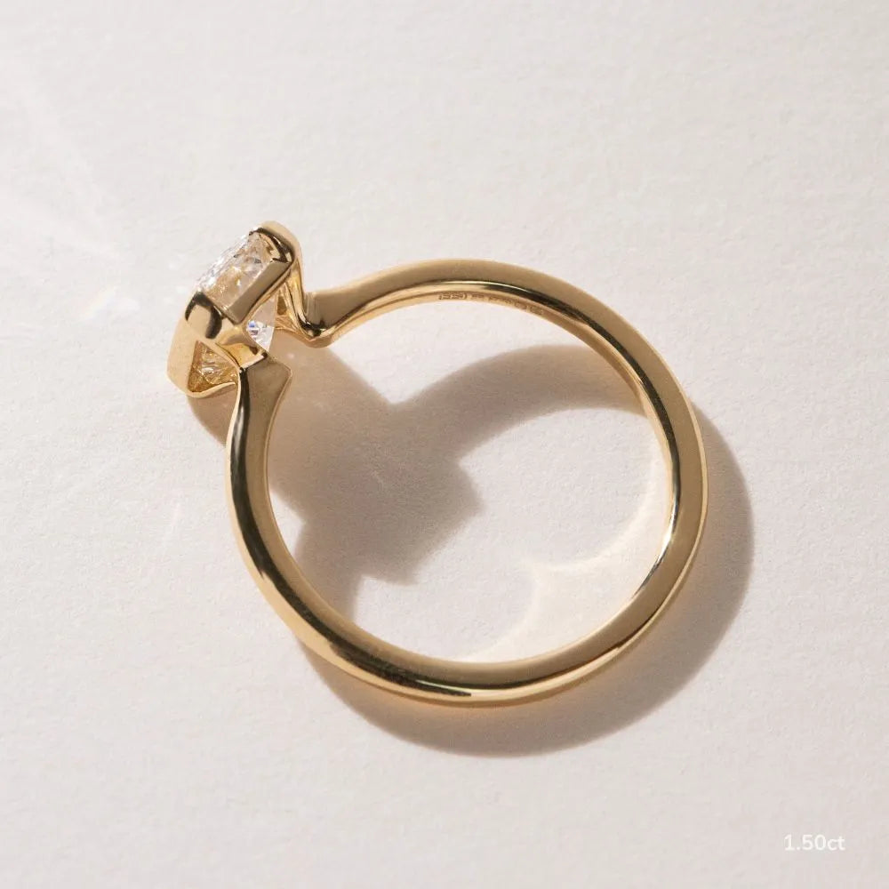 ✦ Cherish your love story with this captivating Half Bezel Solitaire ring, centered around a 1.2 - 1.5 CT Emerald Moissanite that shimmers with brilliance.
