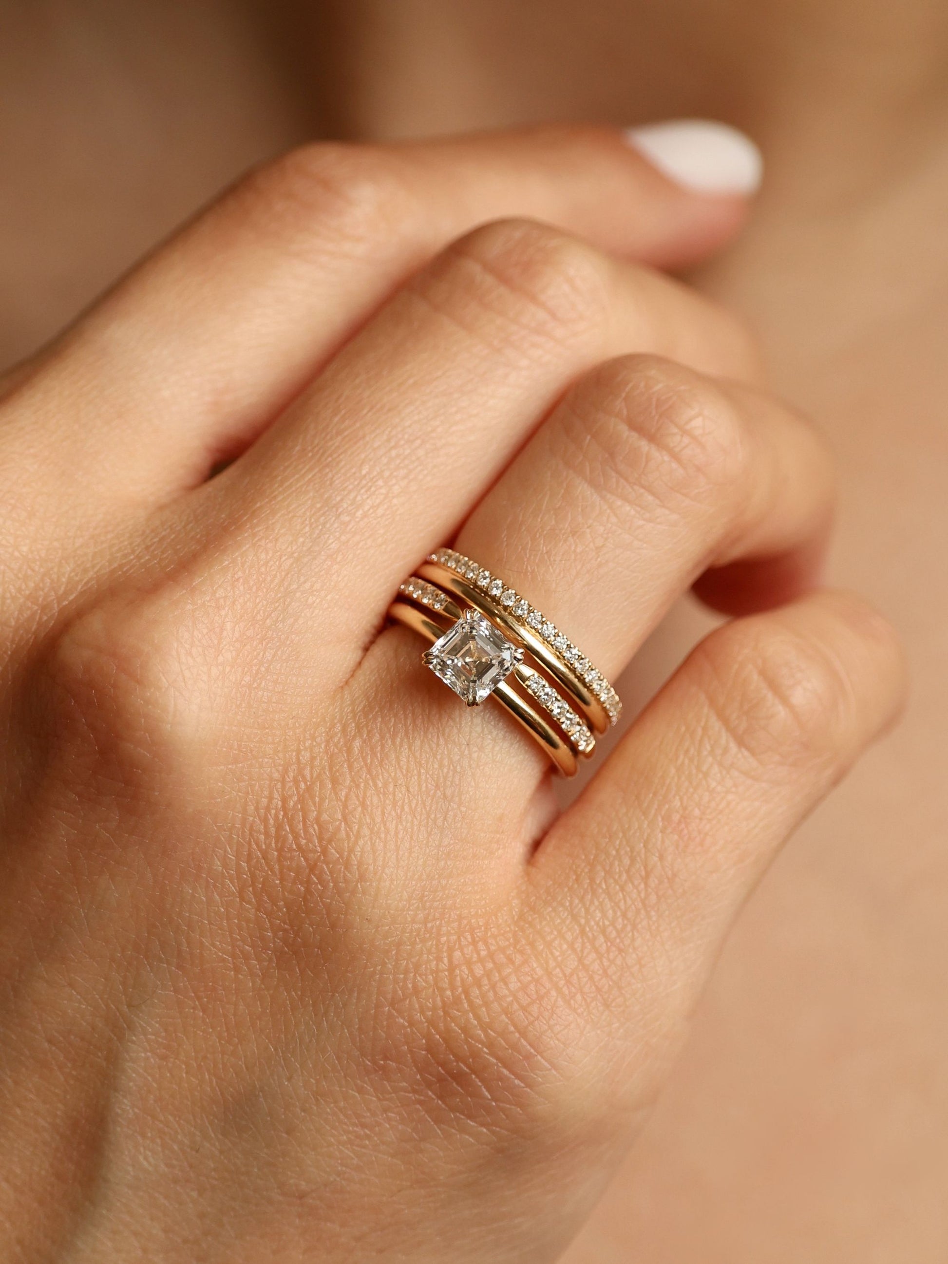 Pair your ring with our handpicked bands, designed to sit in harmony with your chosen style.