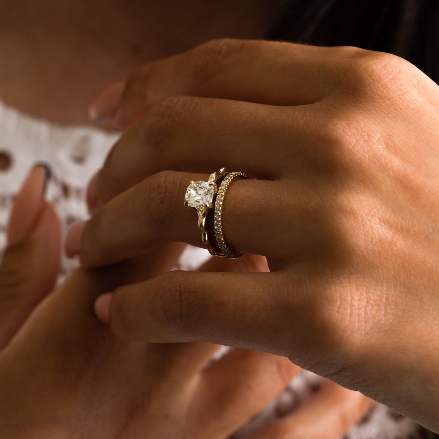 Pair your ring with our handpicked bands, designed to sit in harmony with your chosen style.