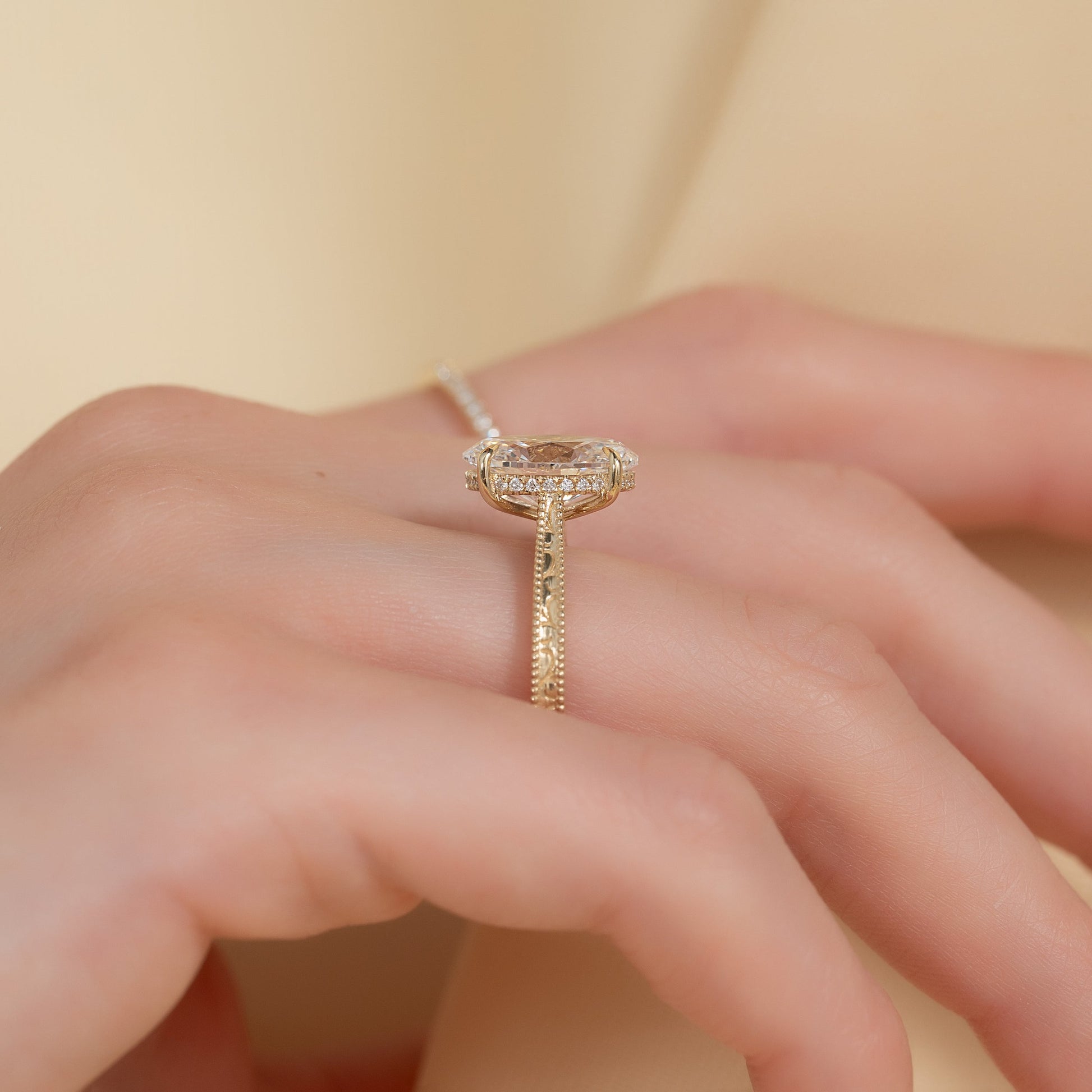 1.5 CT - 2.5 CT Oval Cut Hidden Halo Vintage Moissanite Engagement Ring