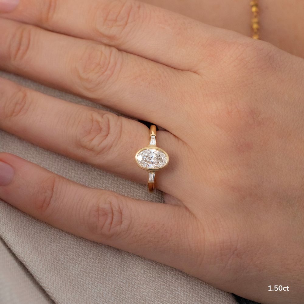 1.5 CT - 2.5 CT Oval Cut Three Stone Bezel Set Moissanite Engagement Ring