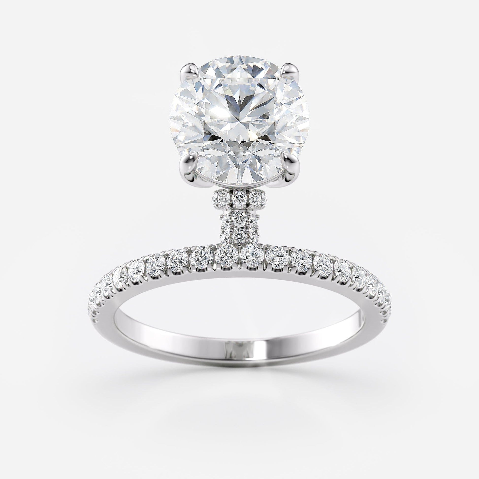 1.5 CT - 2.5 CT Round Cut Hidden Halo & Dainty Pave Moissanite Engagement Ring
