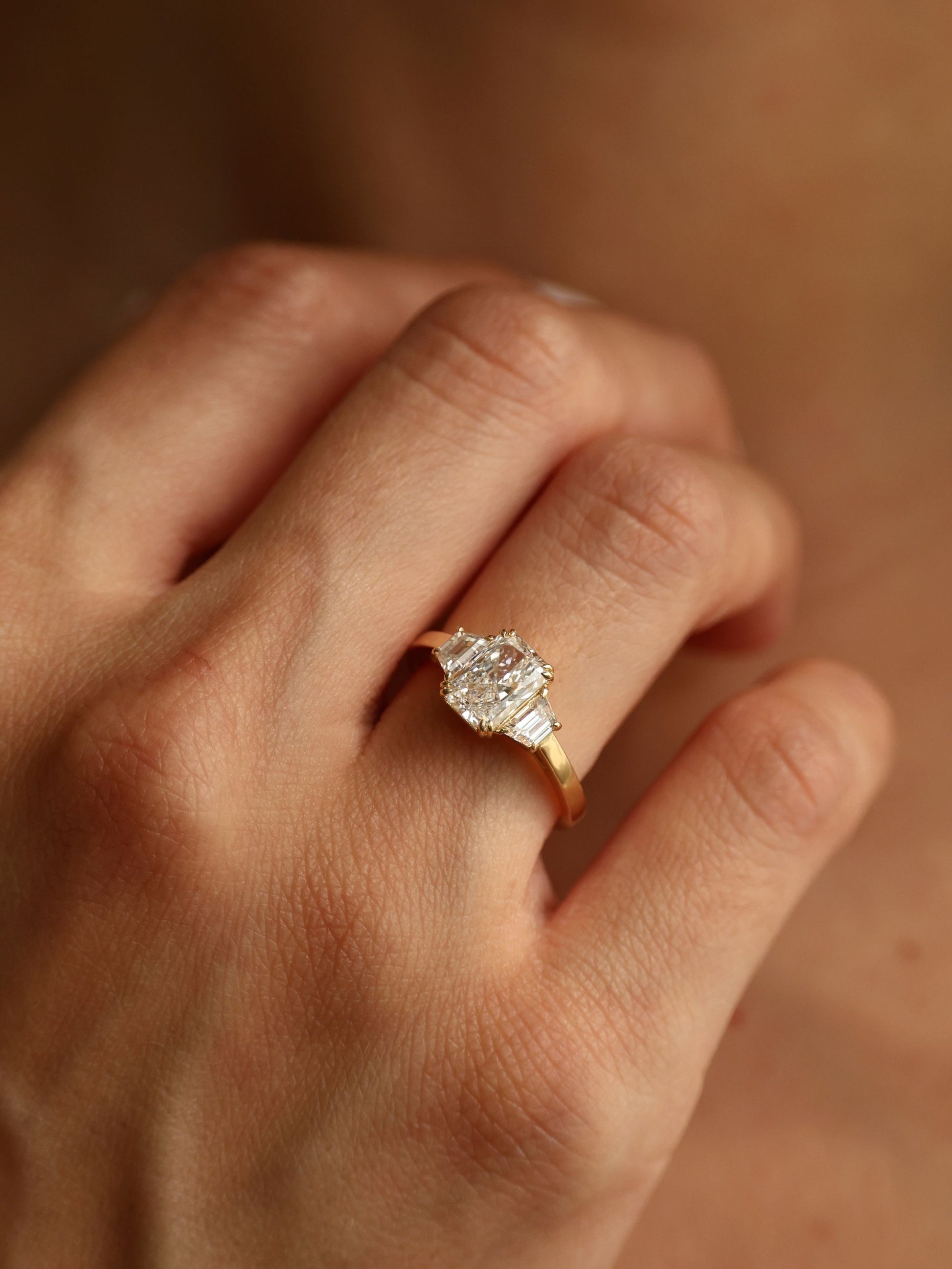 1.5 CT - 3.5 CT Radiant Cut Lab grown Diamond Three Stone Engagement Ring