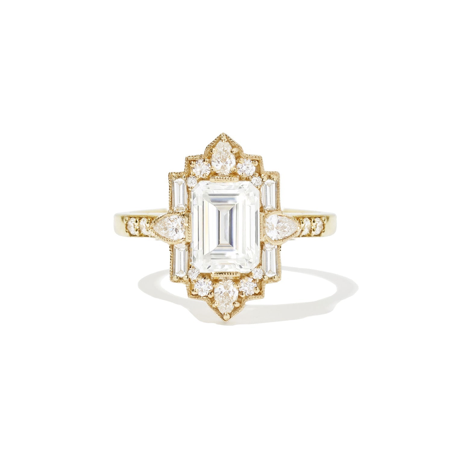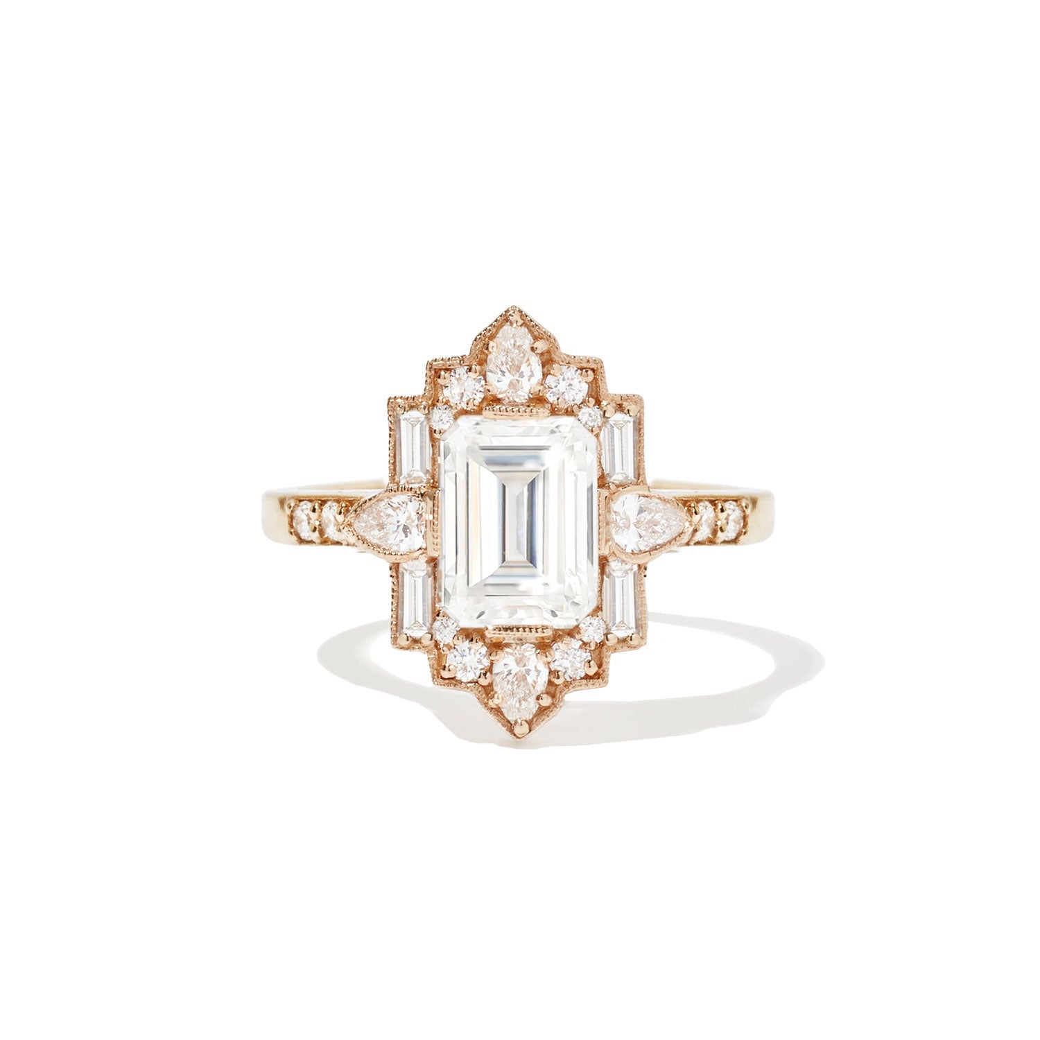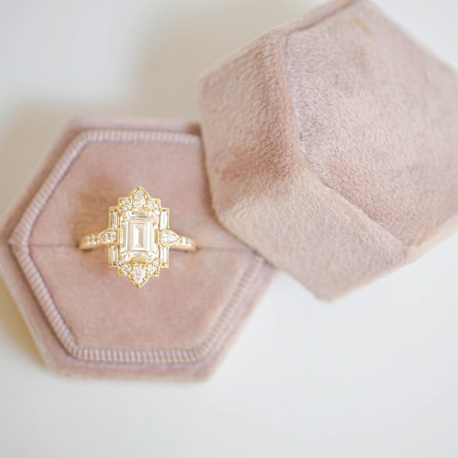 1.5 CT Emerald Cut Moissanite Art Deco Mosaic Engagement Ring