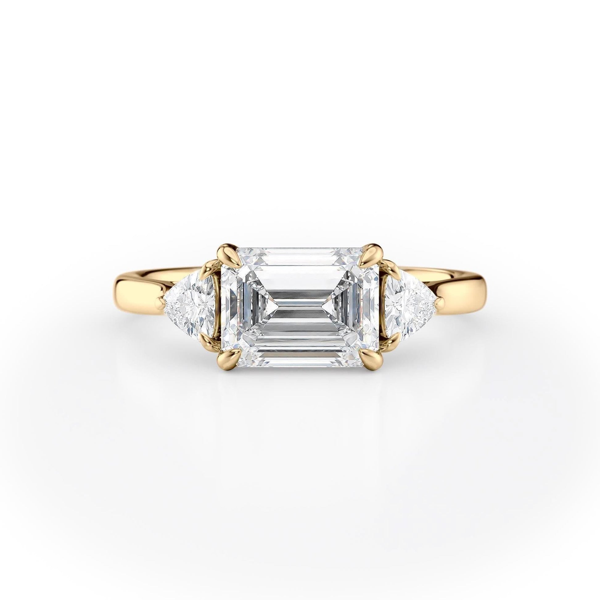 ✦ Cherish your love story with this captivating Three Stone ring, centered around a 1.5 CT Emerald Moissanite that shimmers with brilliance.
