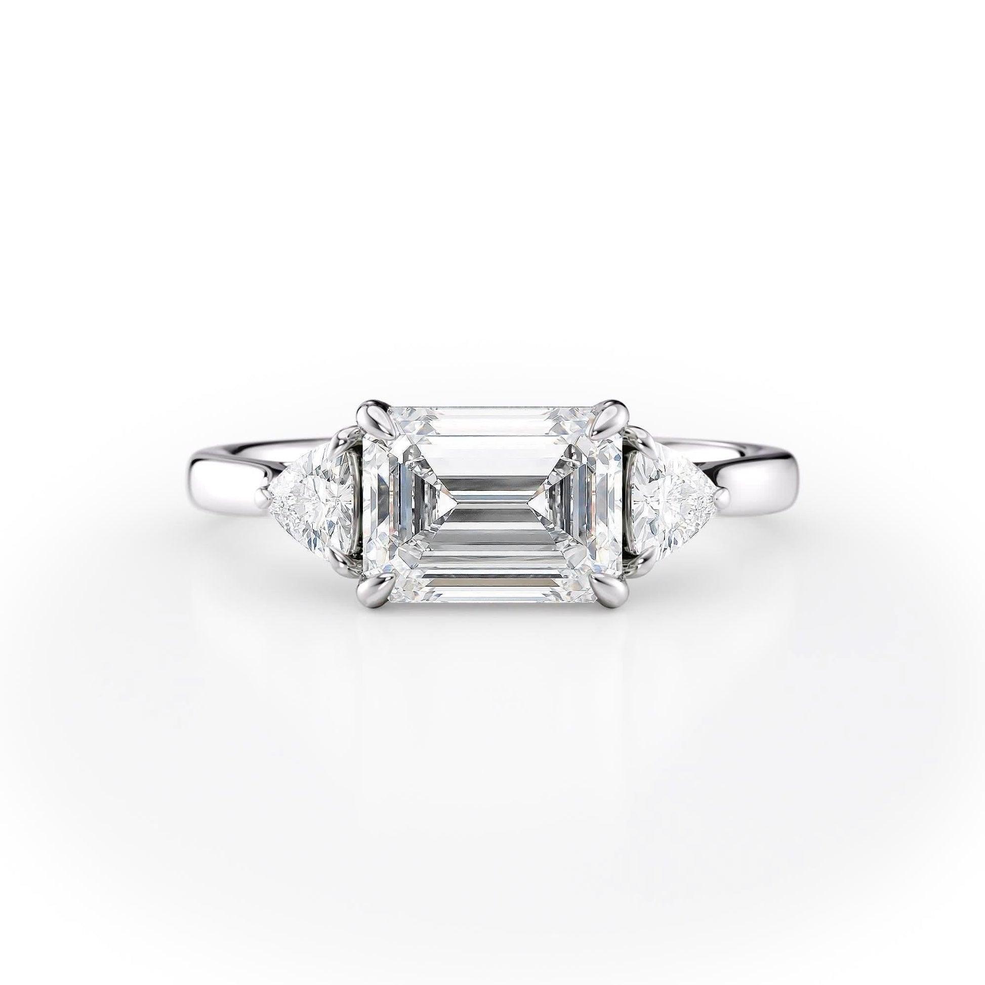 1.5 CT Emerald Cut Three Stone Moissanite Engagement Ring