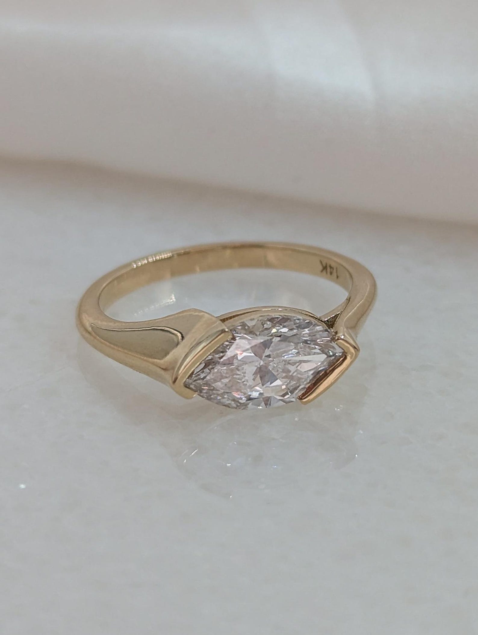 1.5 CT Marquise Cut Half Bezel Solitaire Moissanite Engagement Ring
