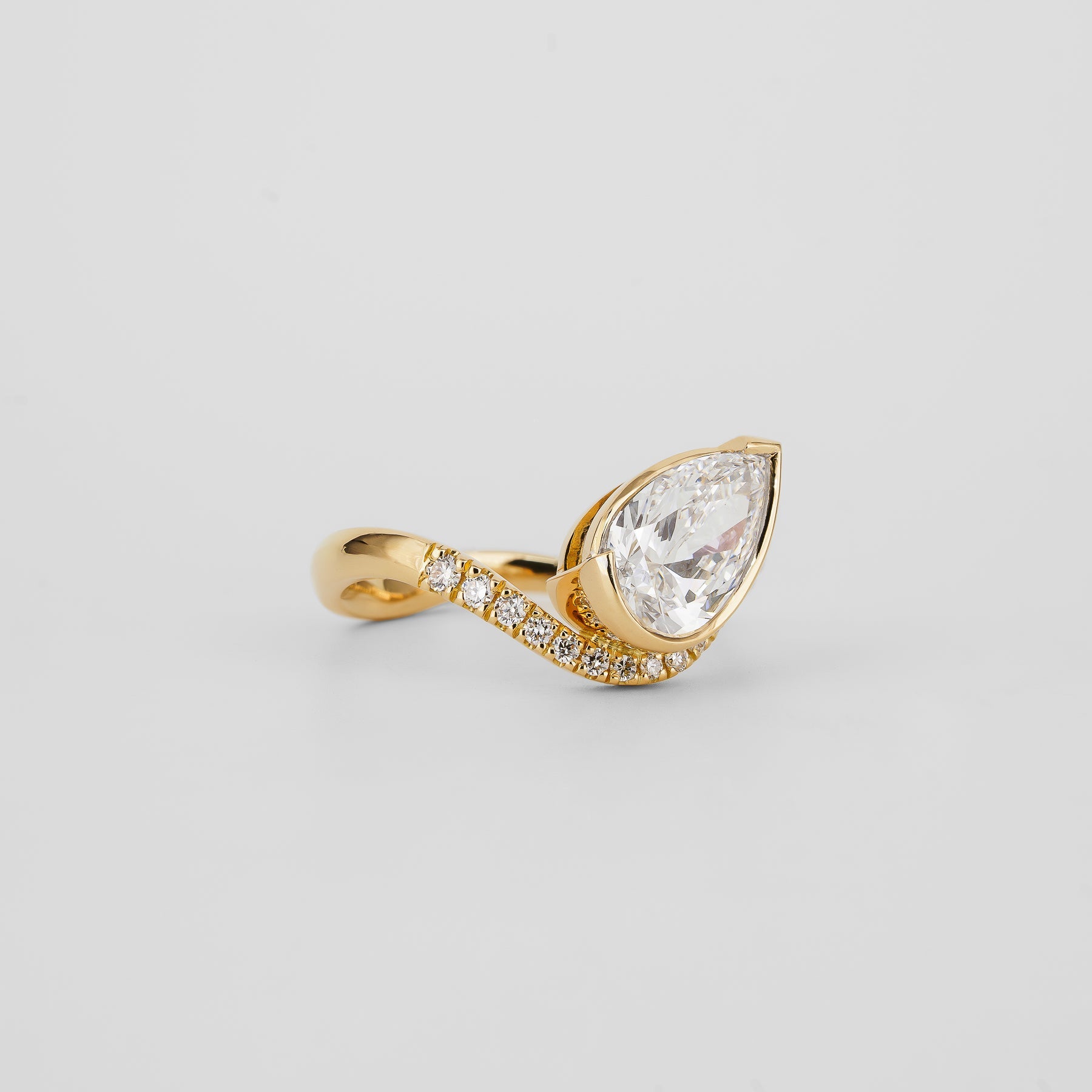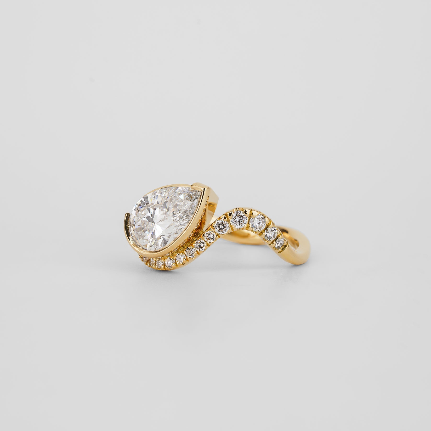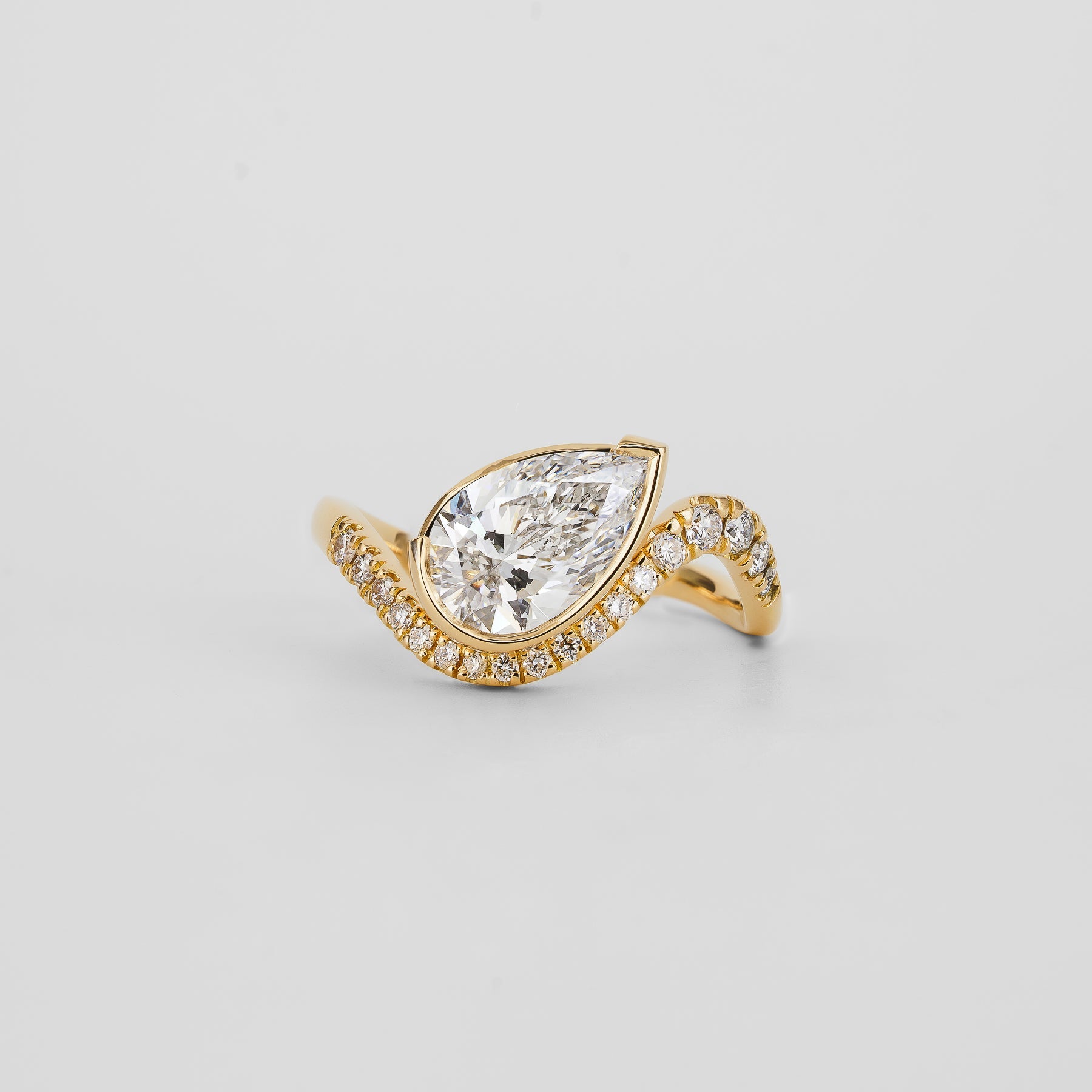 1.51 CT - 3.51 CT Pear Cut Lab grown Diamond Pave & Bezel Setting Engagement Ring