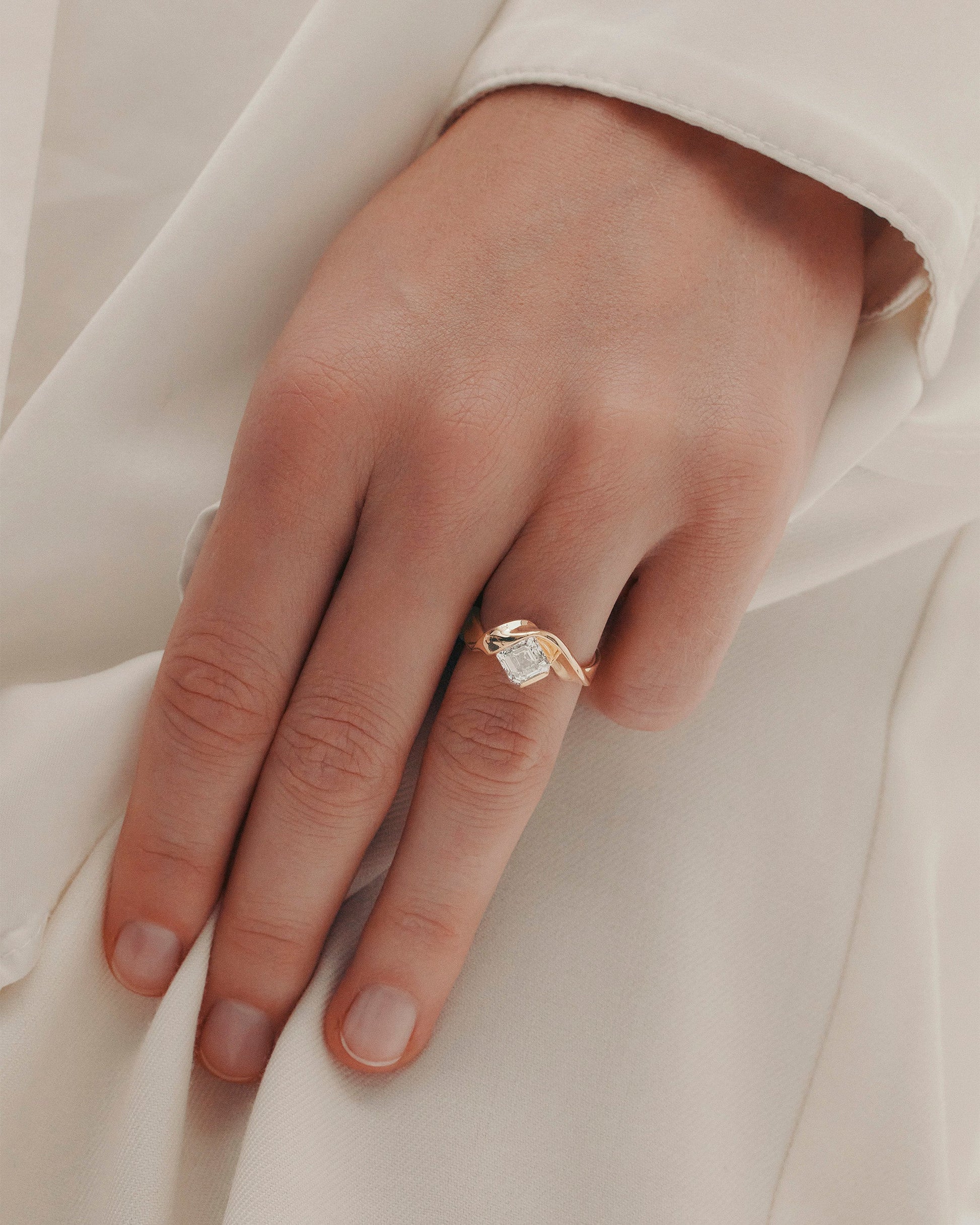✦ The Ring Displayed in the Image Highlights a 1.53 CT Asscher Cut Lab grown Diamond Sculptural Band Solitaire Engagement Ring.