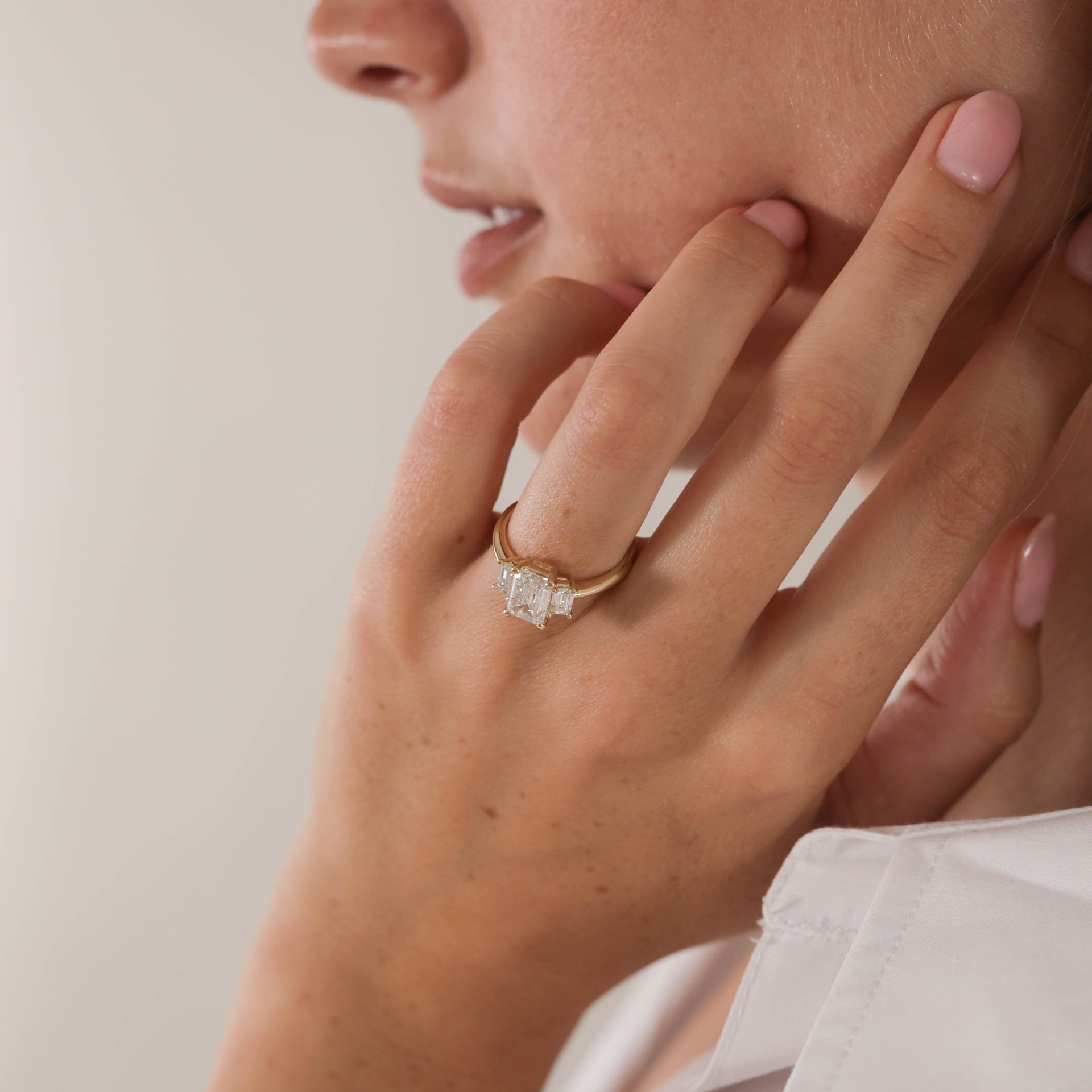 1.75 CT - 3 CT Emerald Cut Lab grown Diamond Three Stone Engagement Ring