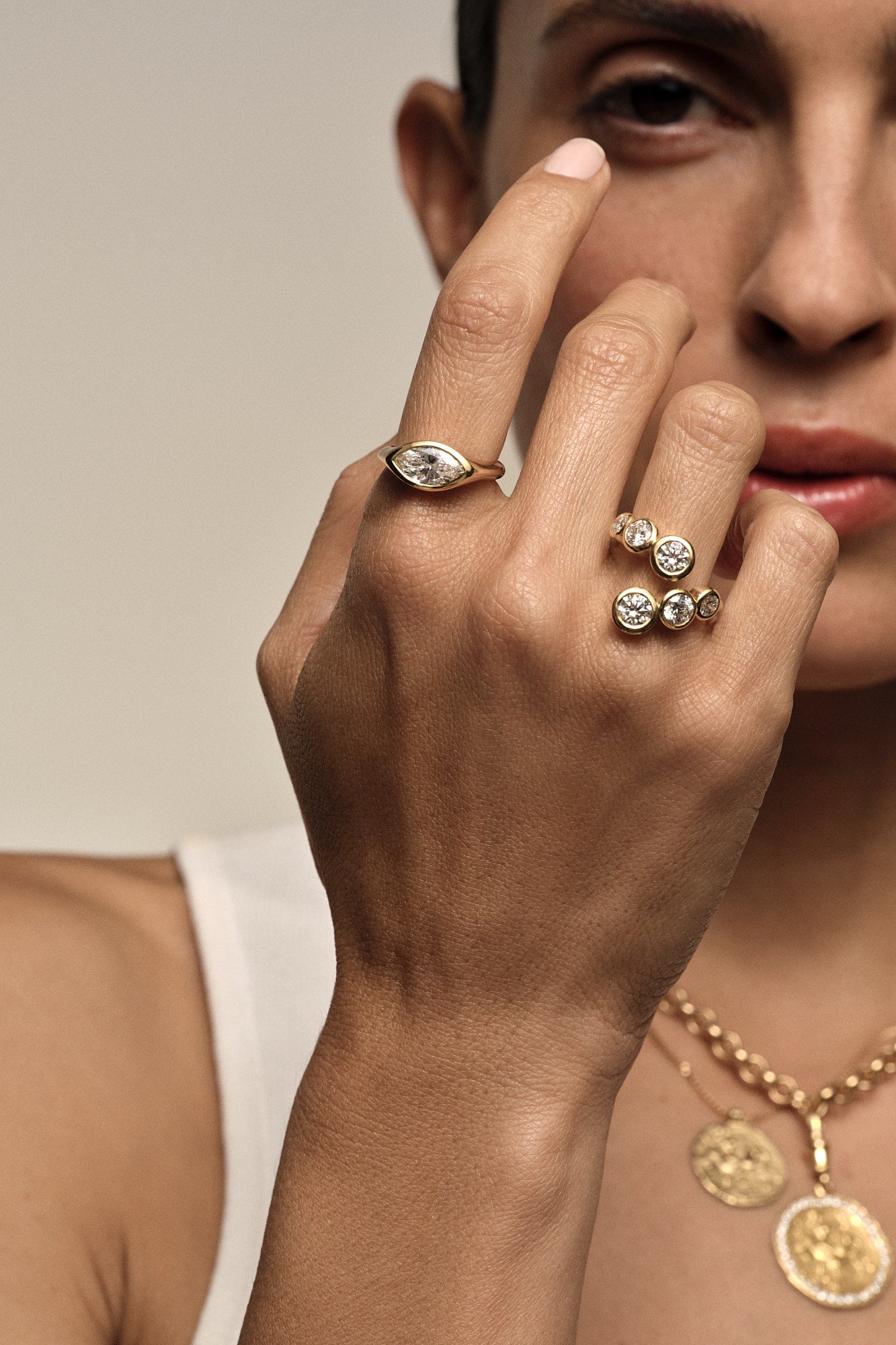 Pair your ring with our handpicked bands, designed to sit in harmony with your chosen style.