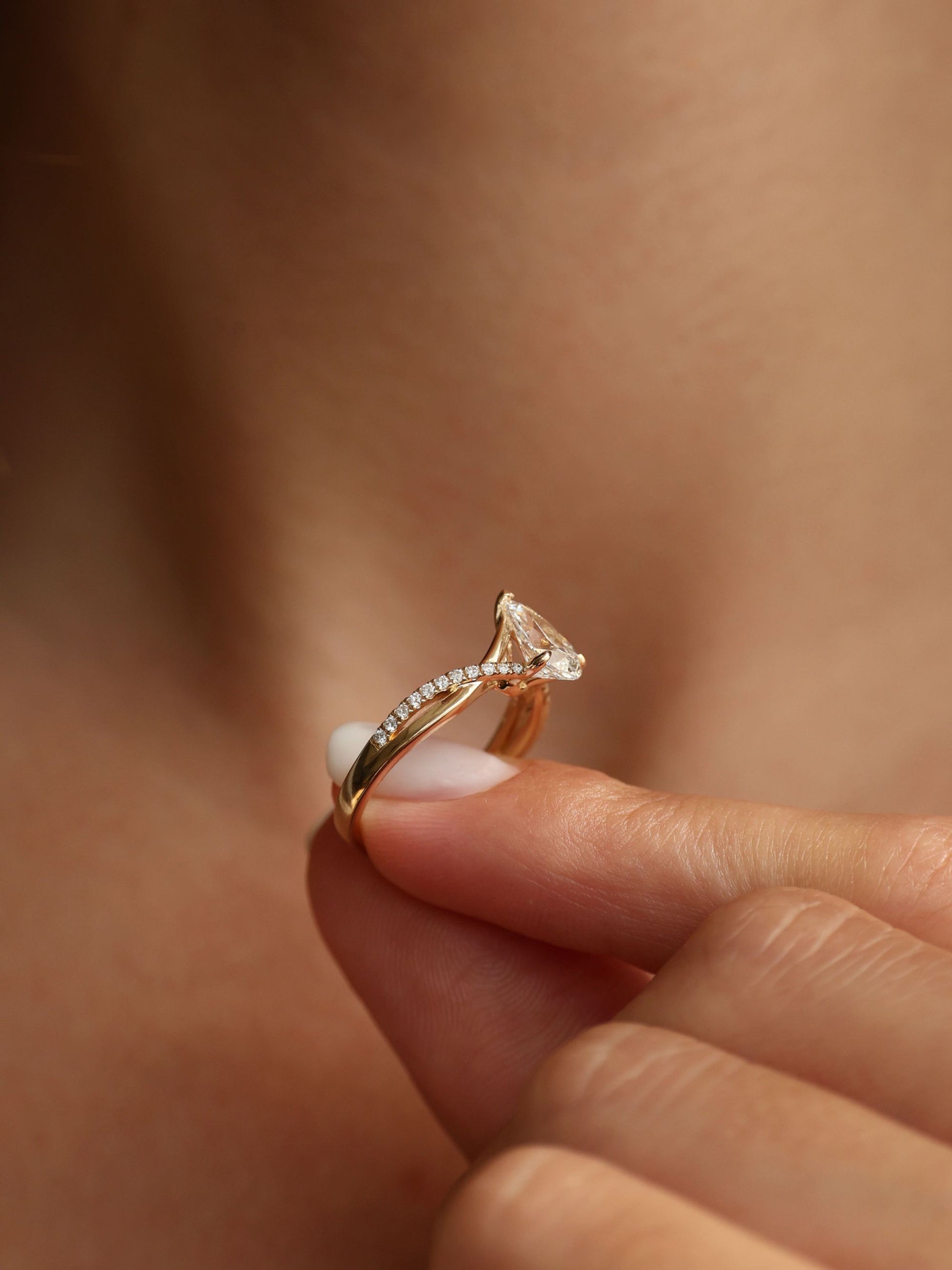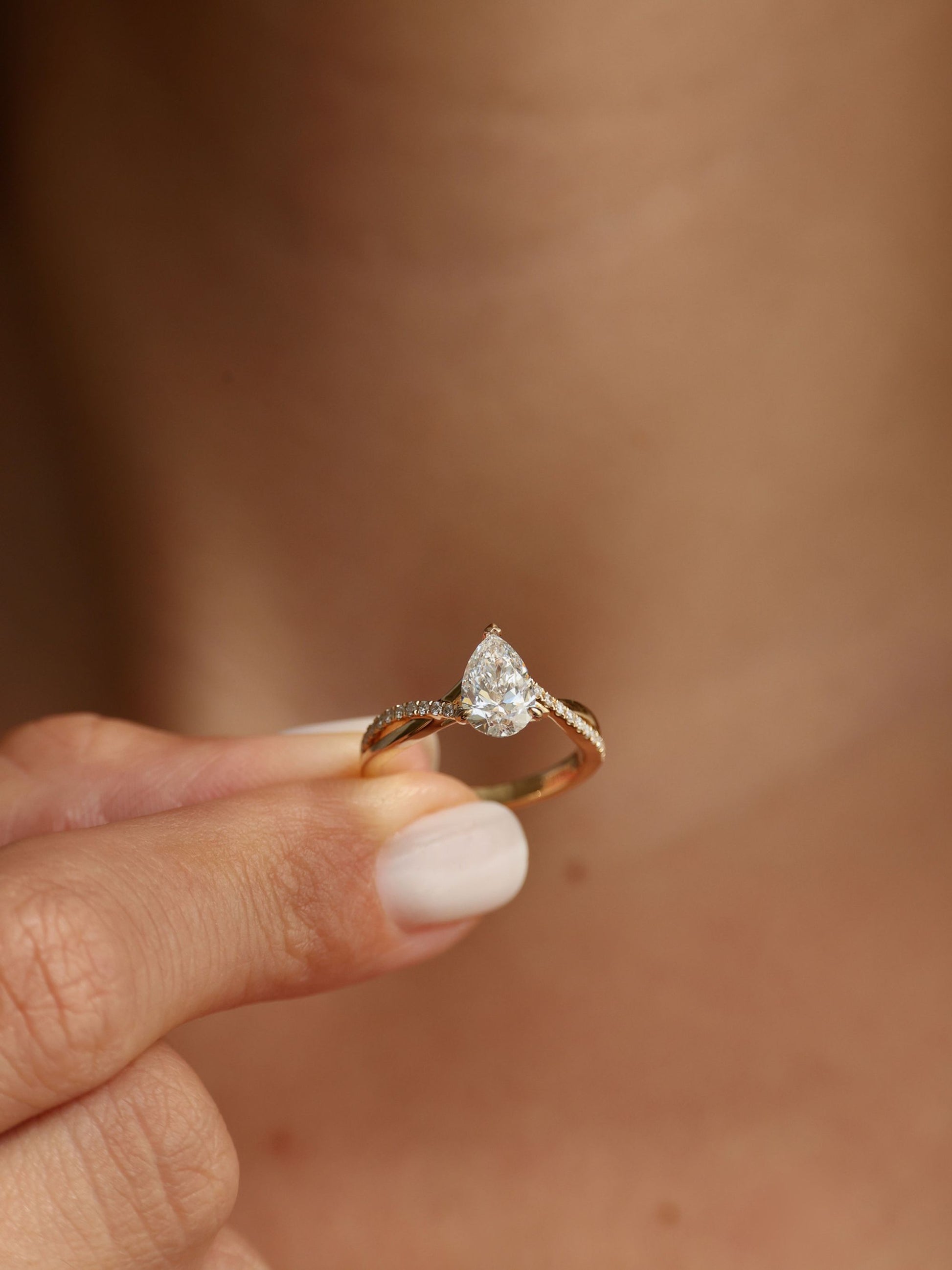 ✦ The Ring Displayed in the Image Highlights a 1 CT - 2 CT Pear Cut Lab grown Diamond Twisted Pave Setting Engagement Ring.