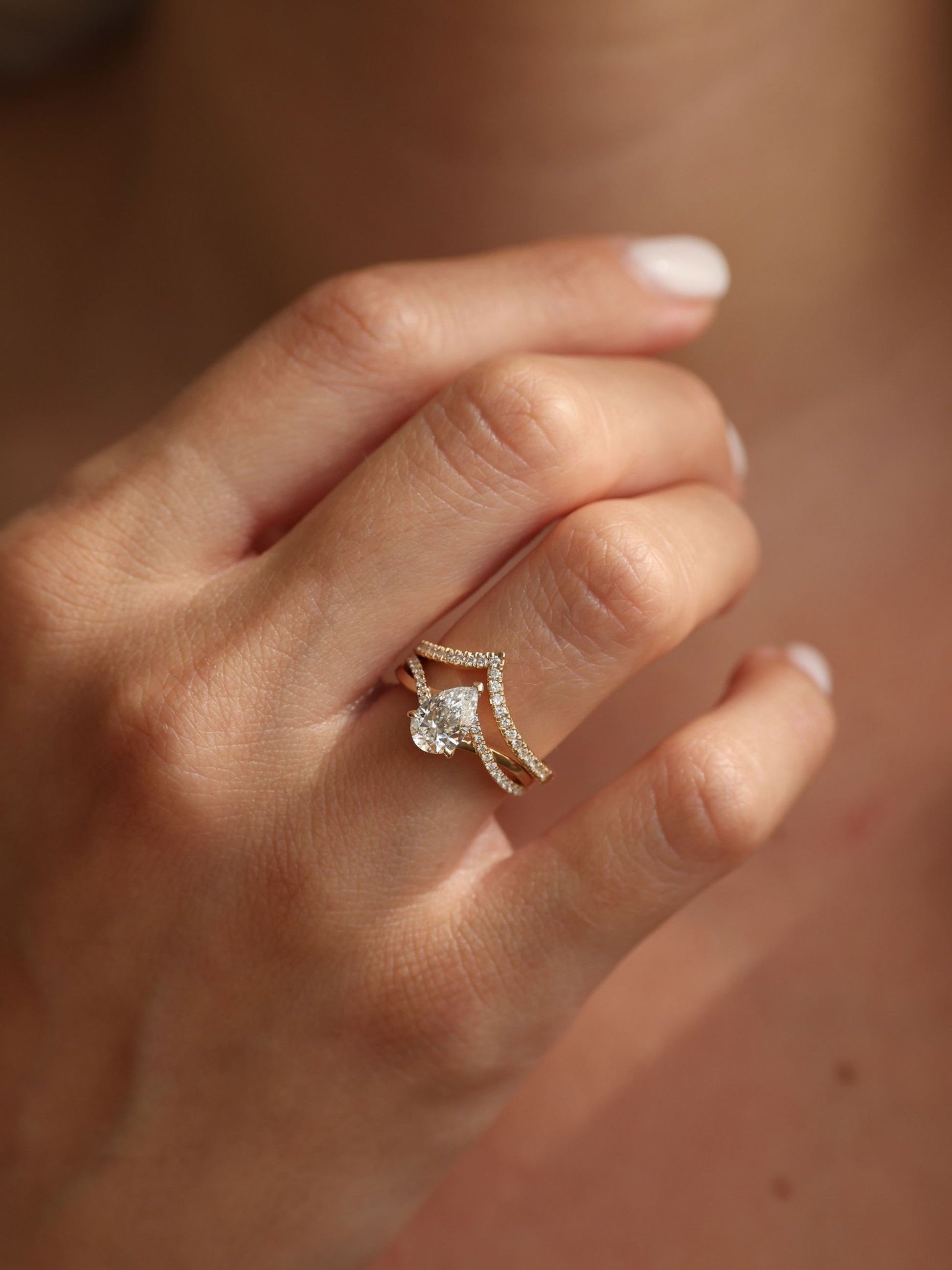 Pair your ring with our handpicked bands, designed to sit in harmony with your chosen style.