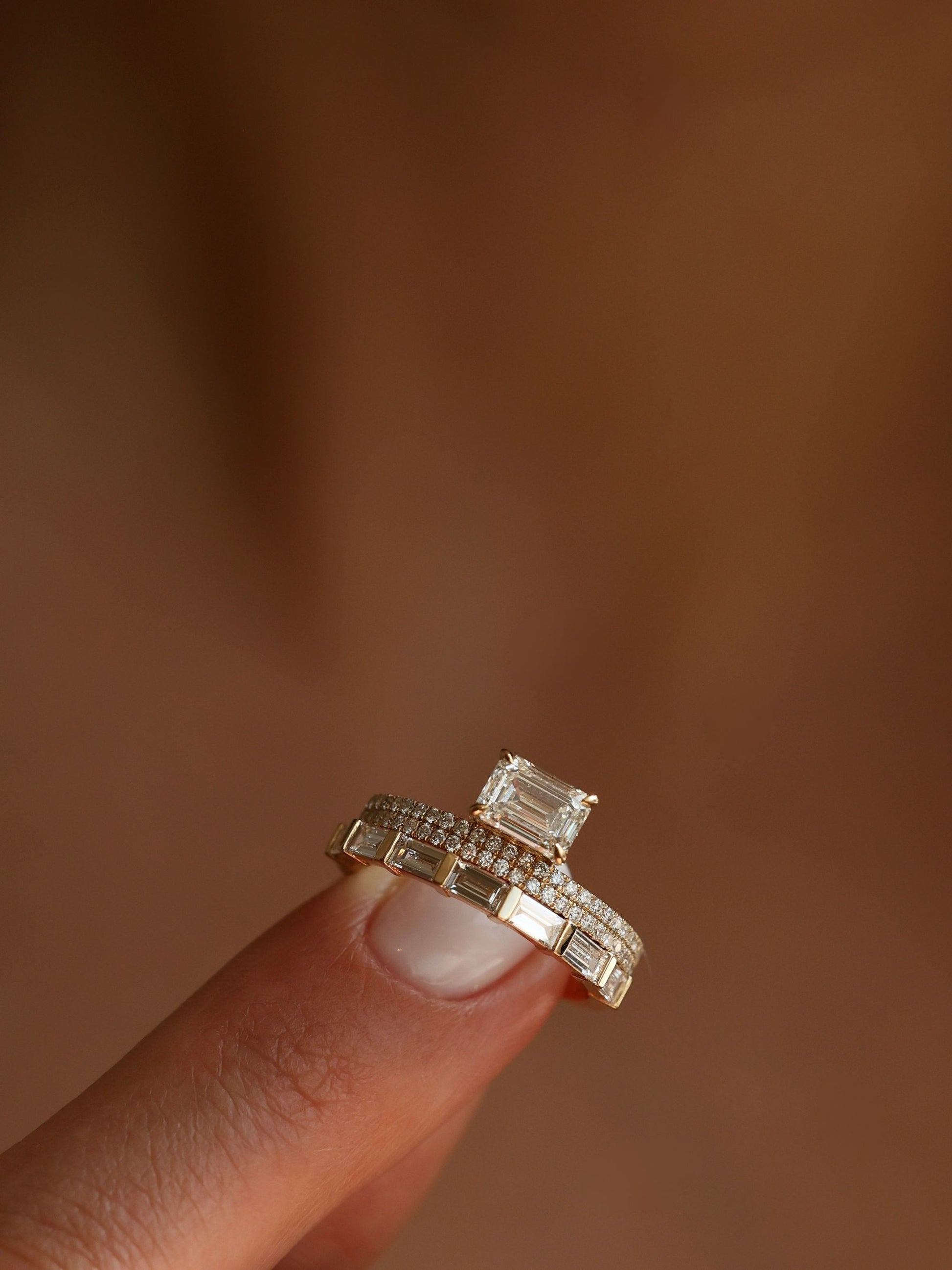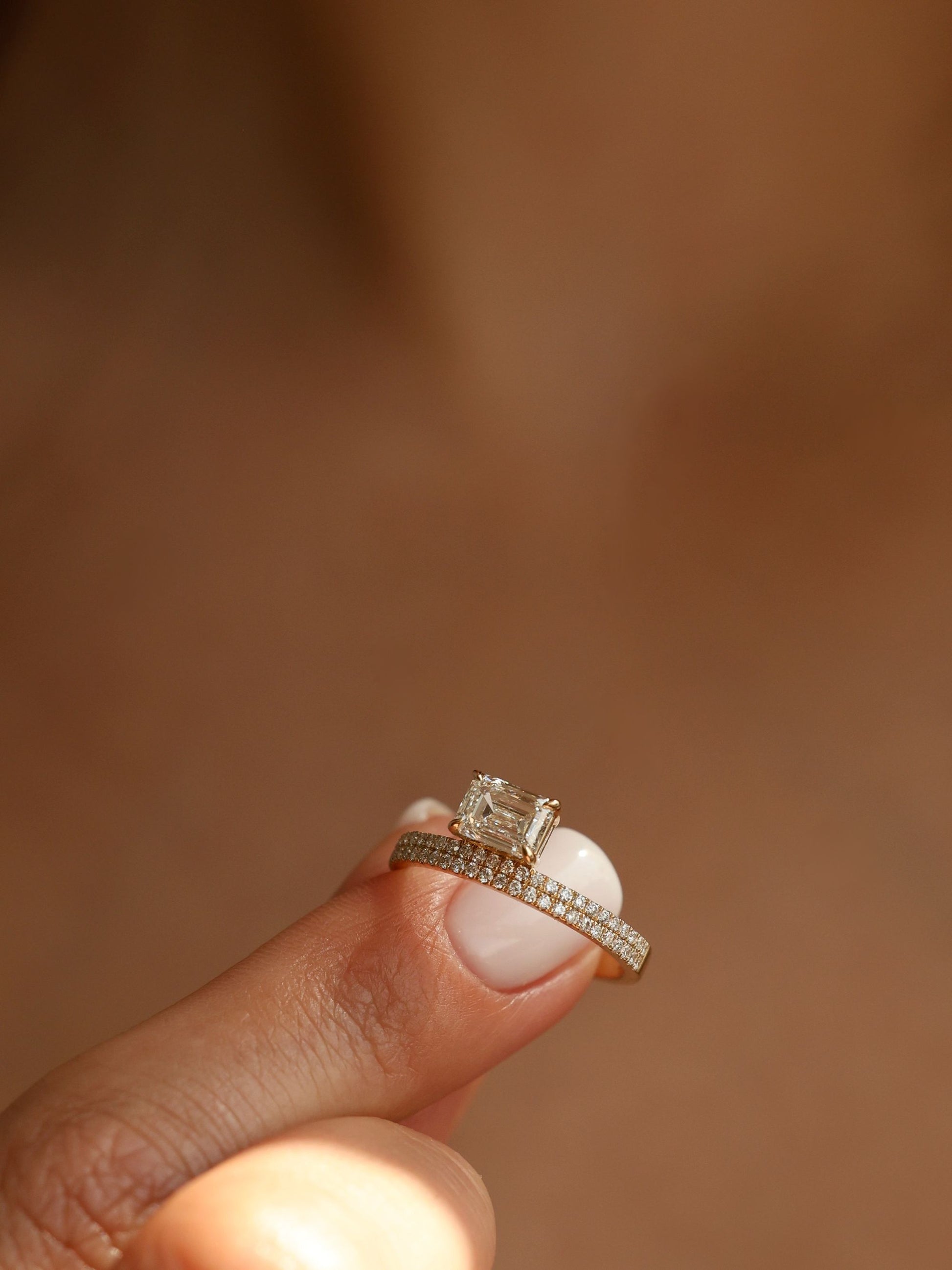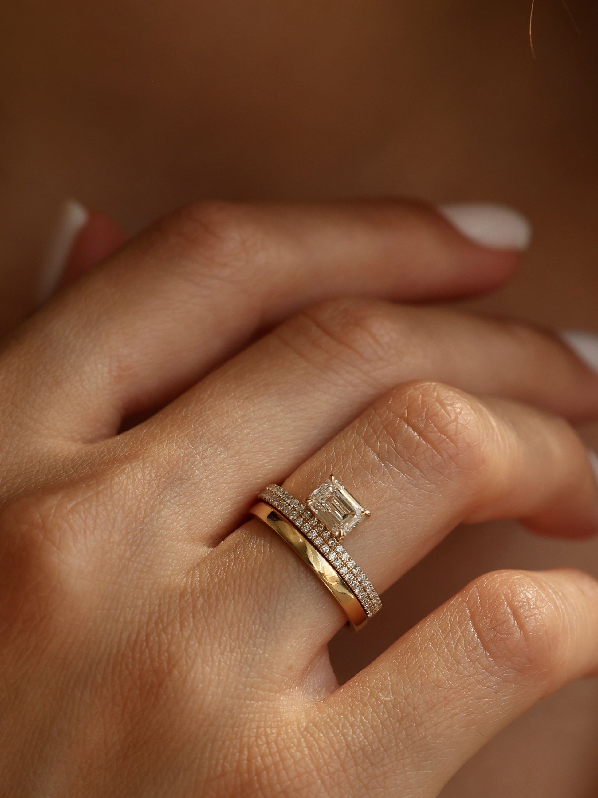 Pair your ring with our handpicked bands, designed to sit in harmony with your chosen style.