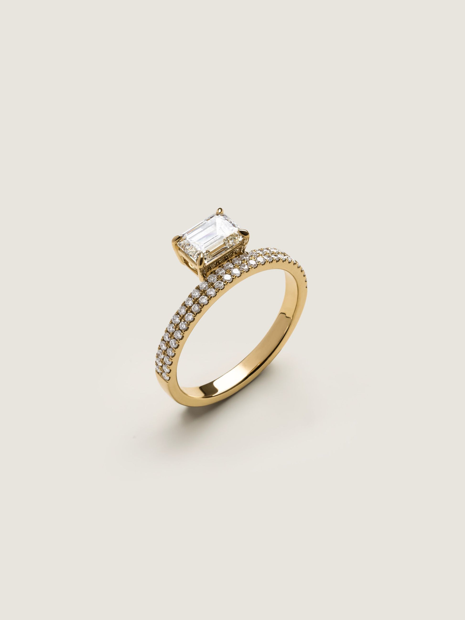 1 CT - 3 CT East-West Emerald Cut Lab grown Diamond Double Band Pave Engagement Ring