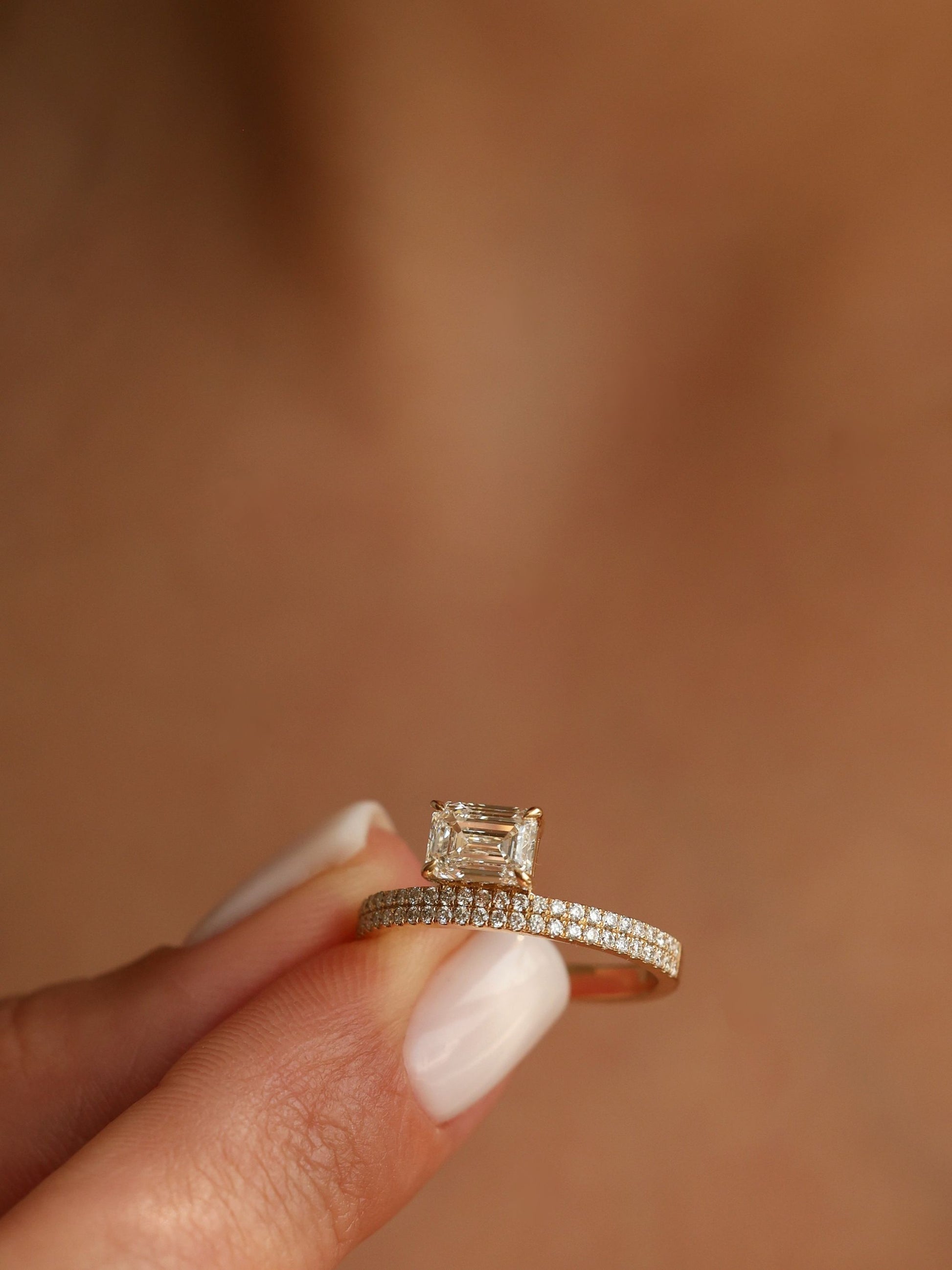 ✦ The Ring Displayed in the Image Highlights a 1 CT - 3 CT East-West Emerald Cut Lab grown Diamond Double Band Pave Engagement Ring.