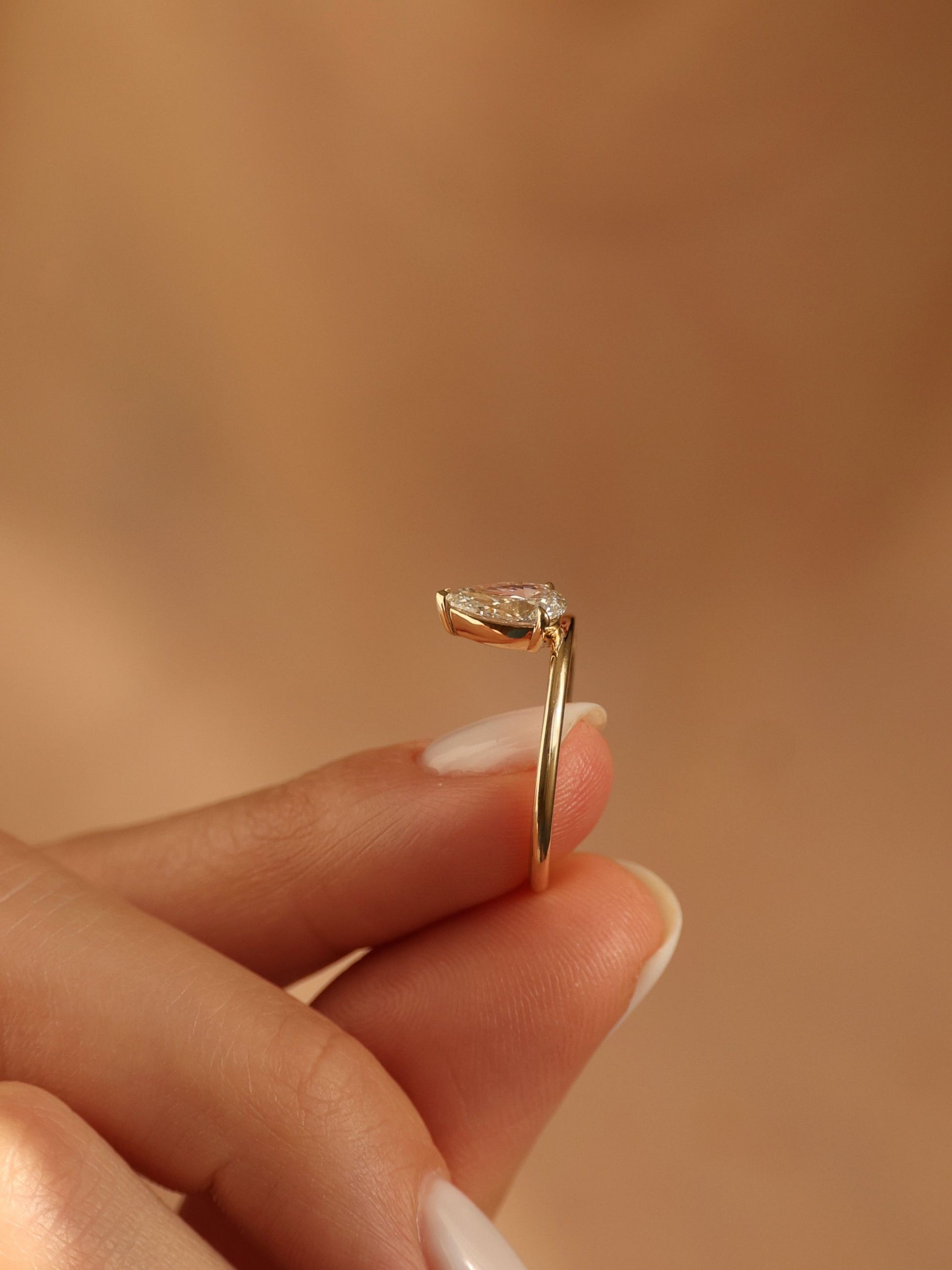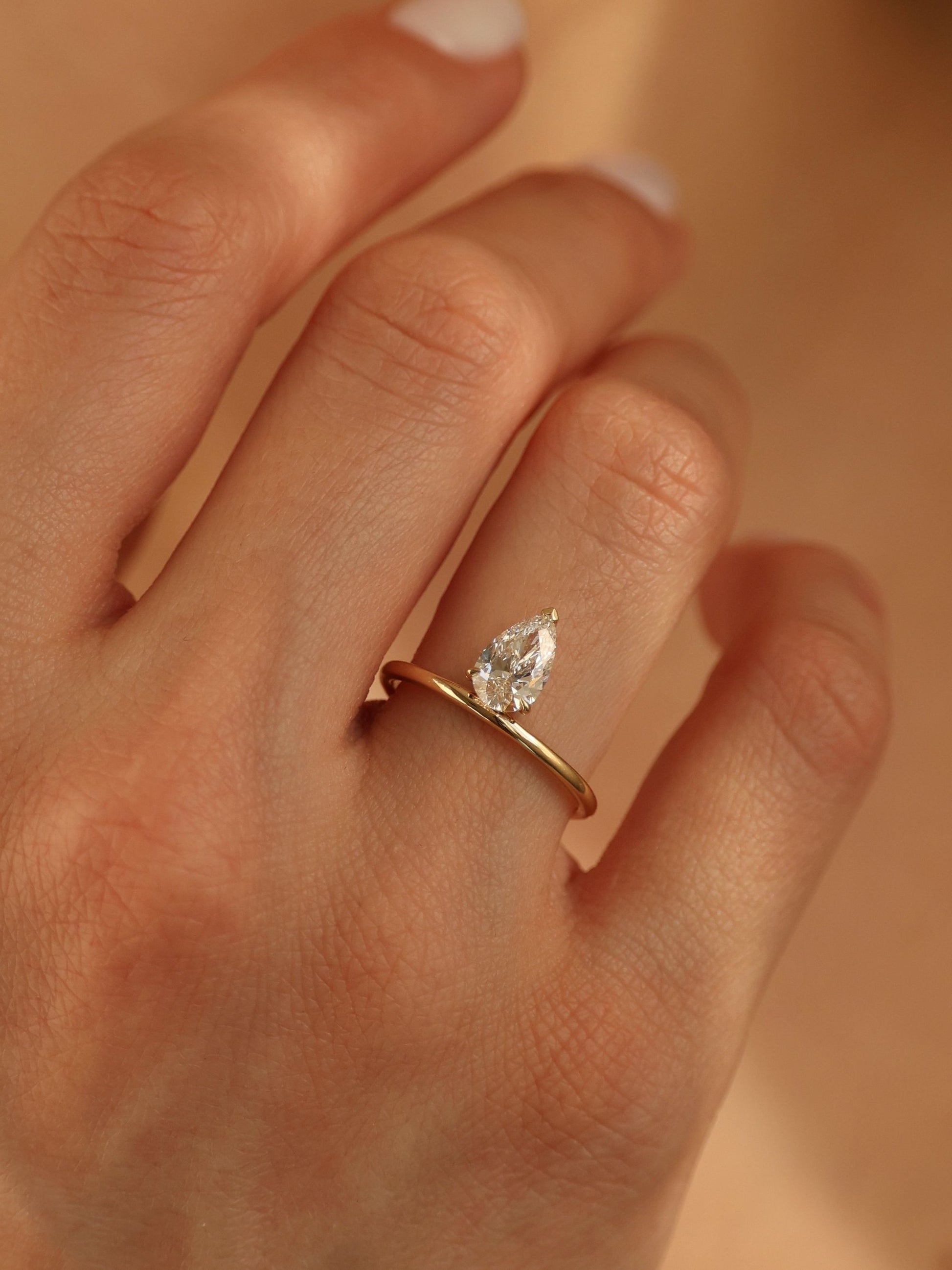 ✦ The Ring Displayed in the Image Highlights a 1 CT - 3 CT Pear Cut Lab grown Diamond Solitaire Engagement Ring.