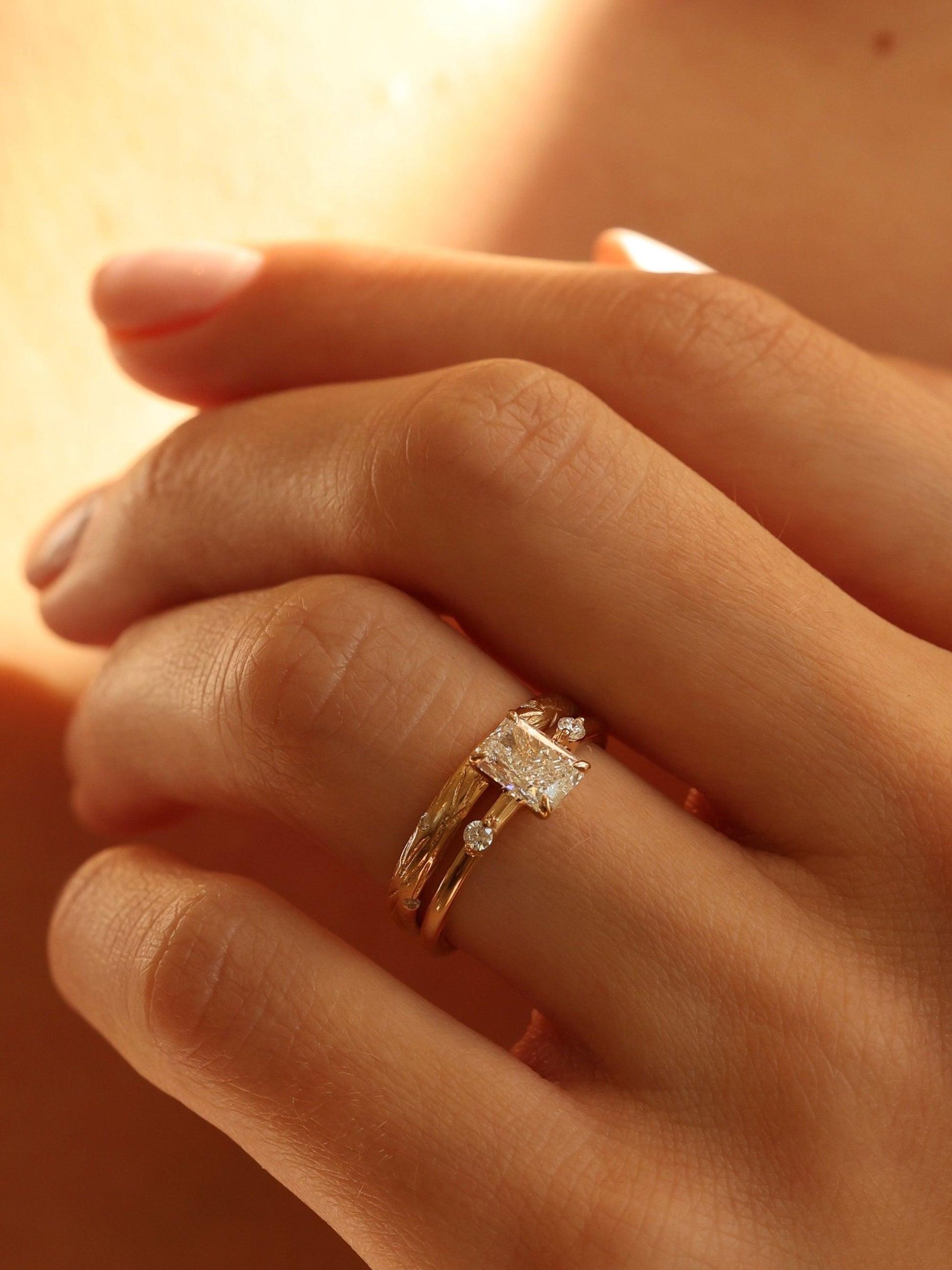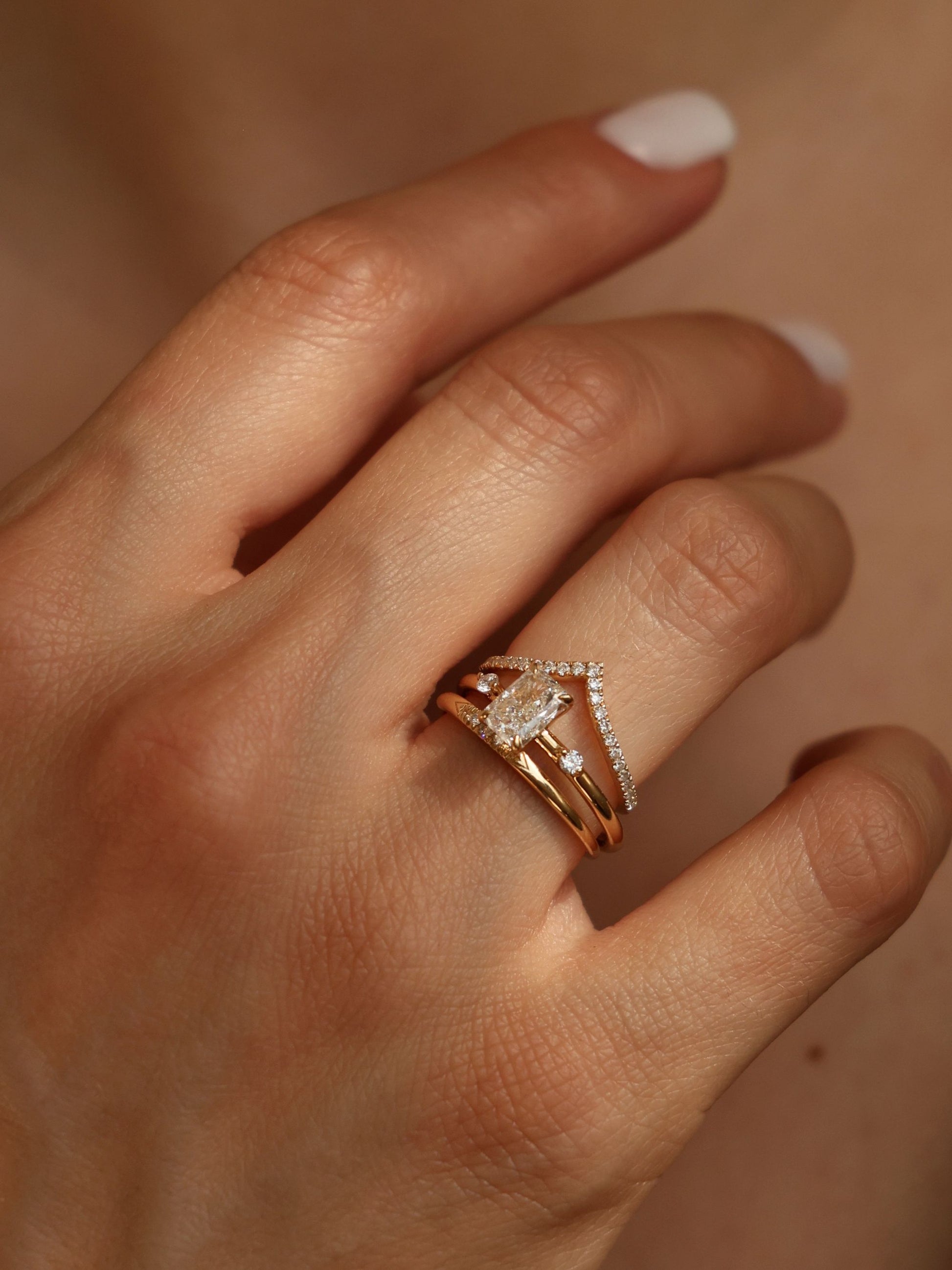 Pair your ring with our handpicked bands, designed to sit in harmony with your chosen style.