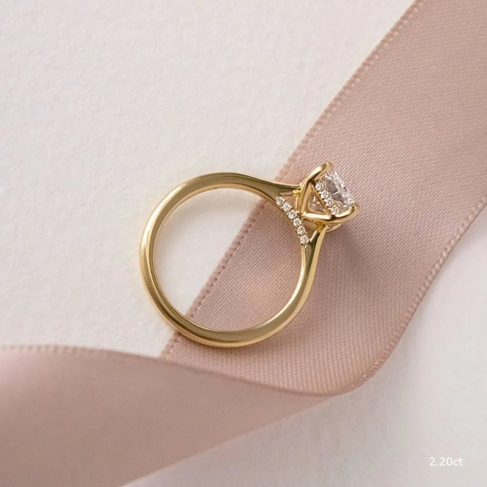 ✦ Cherish your love story with this captivating Hidden Halo ring, centered around a 2.2 - 4 CT Radiant Moissanite that shimmers with brilliance.