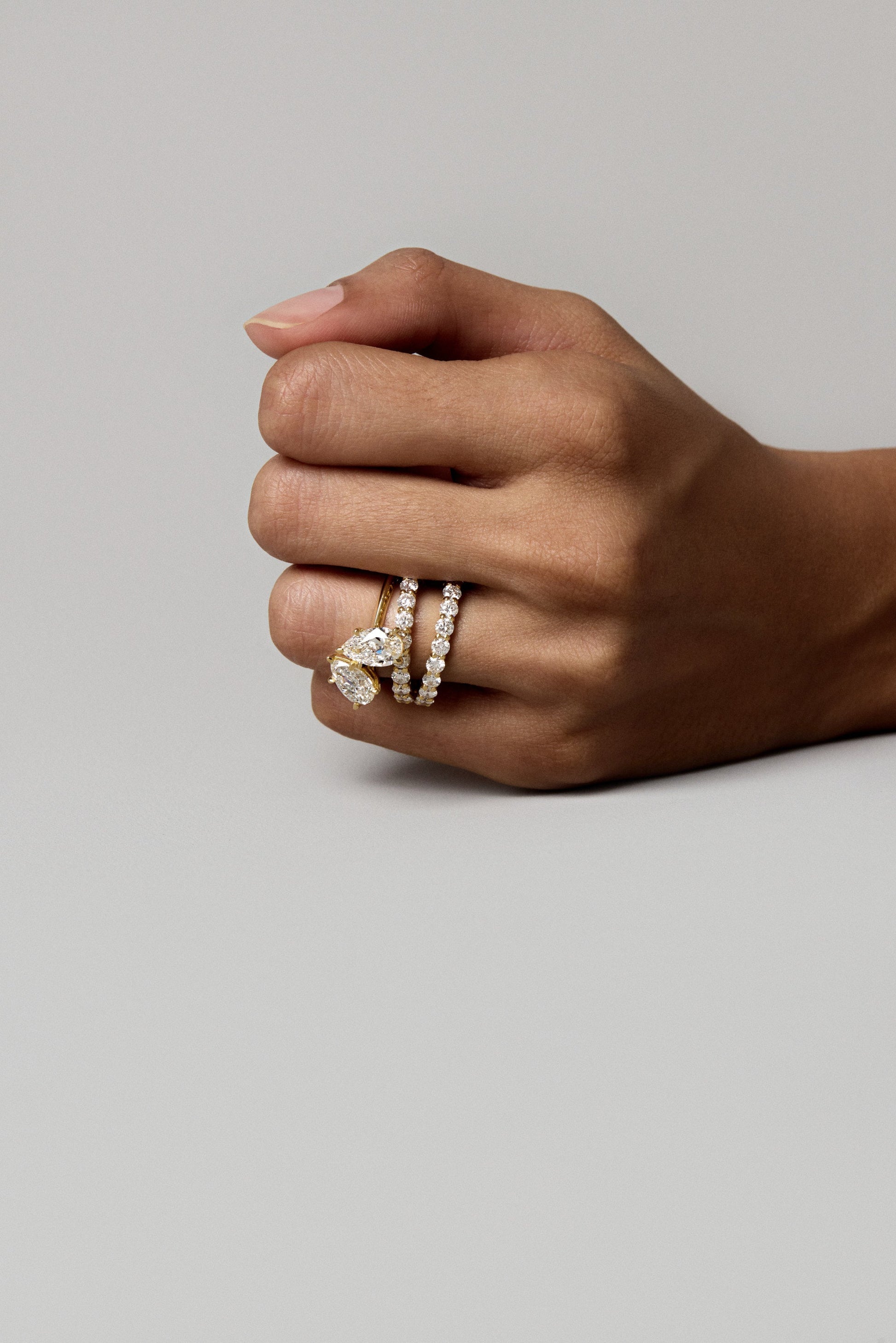 Pair your ring with our handpicked bands, designed to sit in harmony with your chosen style.