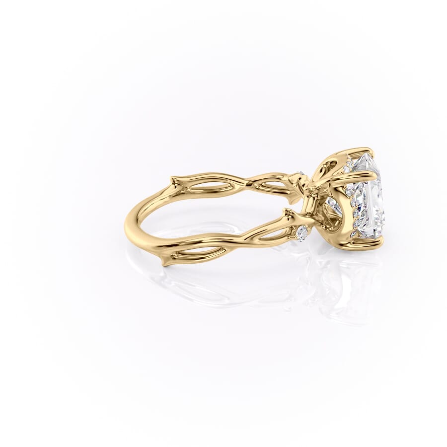 ✦ Cherish your love story with this captivating Halo Twig Style ring, centered around a 2 - 2.5 CT Princess Moissanite that shimmers with brilliance.