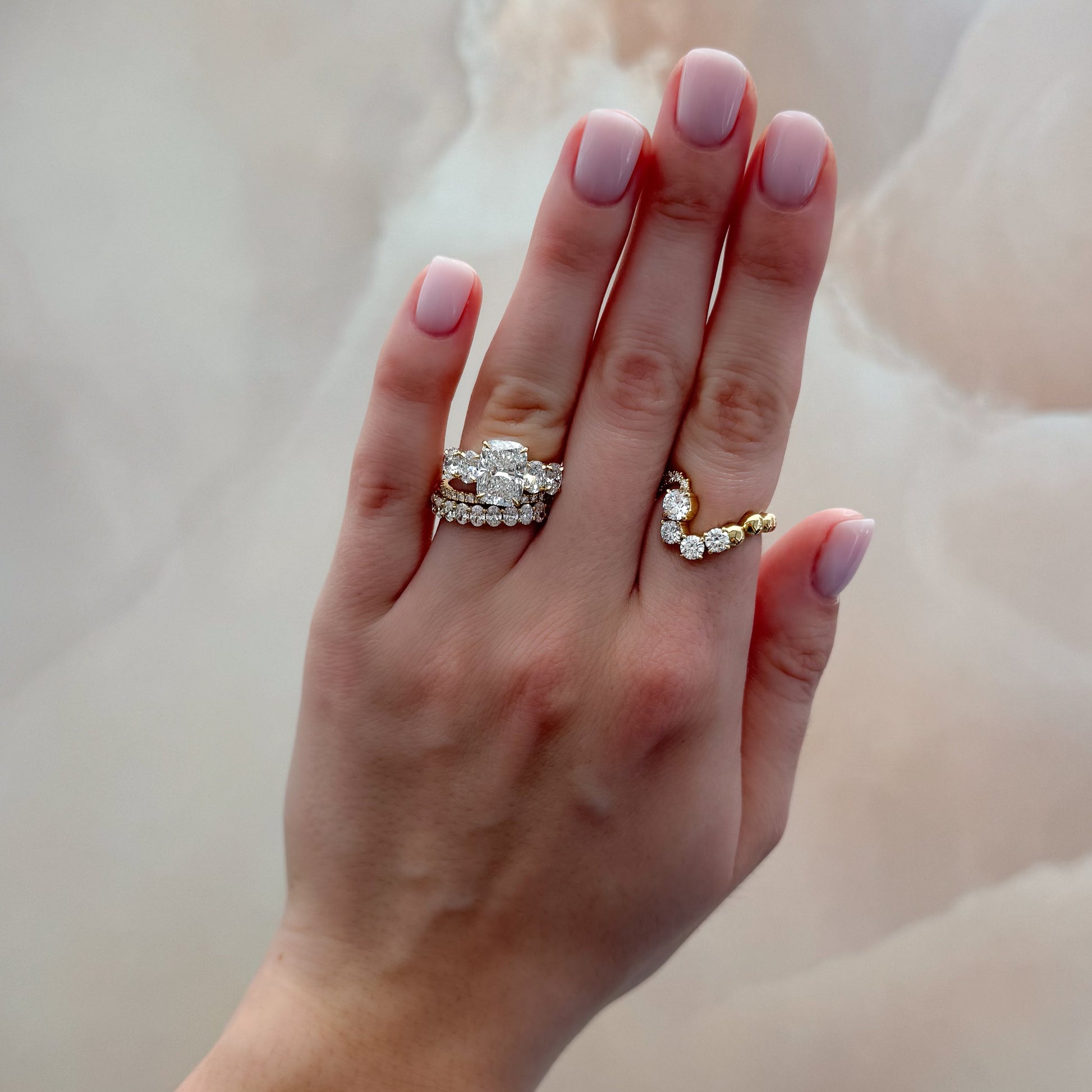 Pair your ring with our handpicked bands, designed to sit in harmony with your chosen style.
