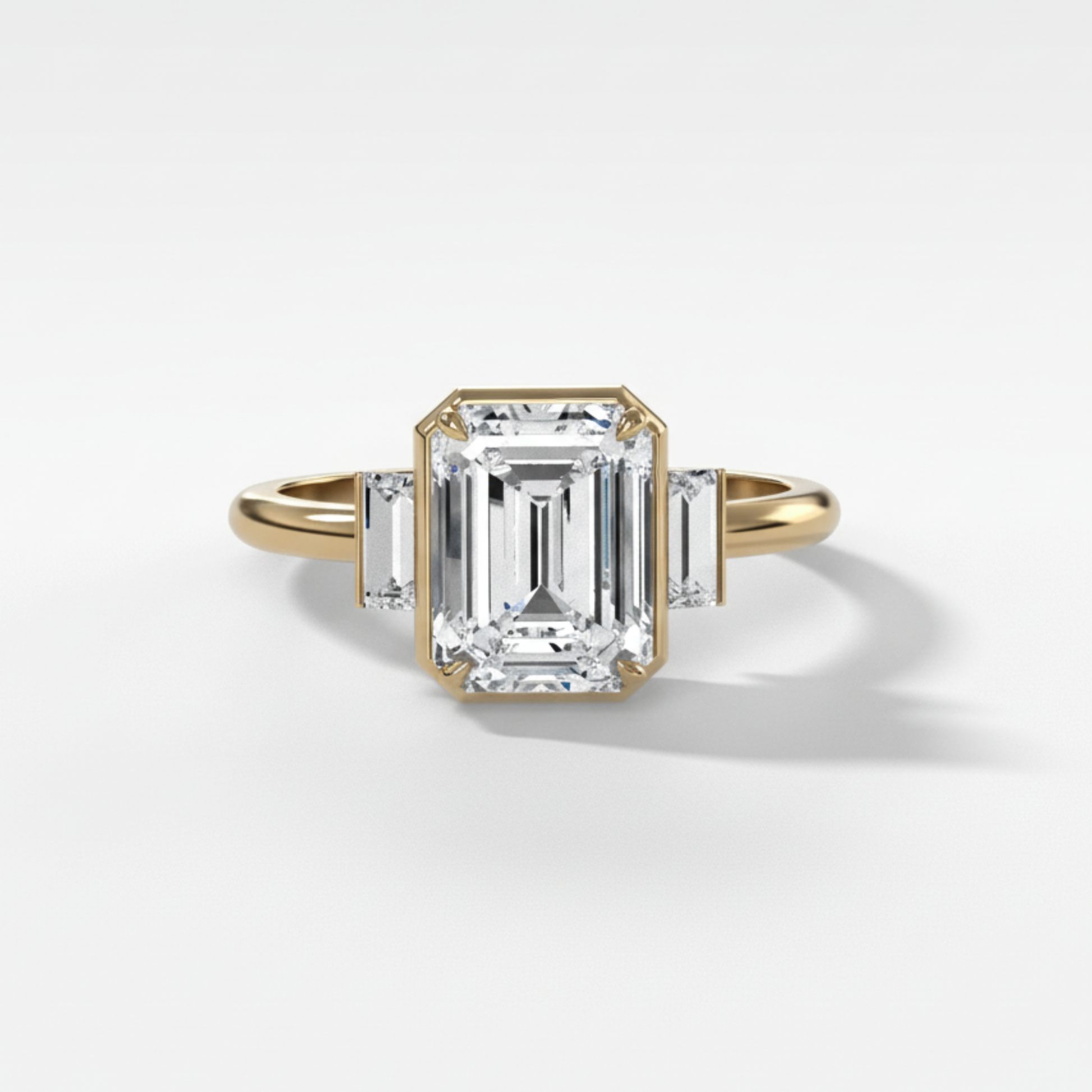 ✦ The Ring Displayed in the Image Highlights a 2 CT - 3 CT Emerald Cut Lab grown Diamond Three Stone Engagement Ring.