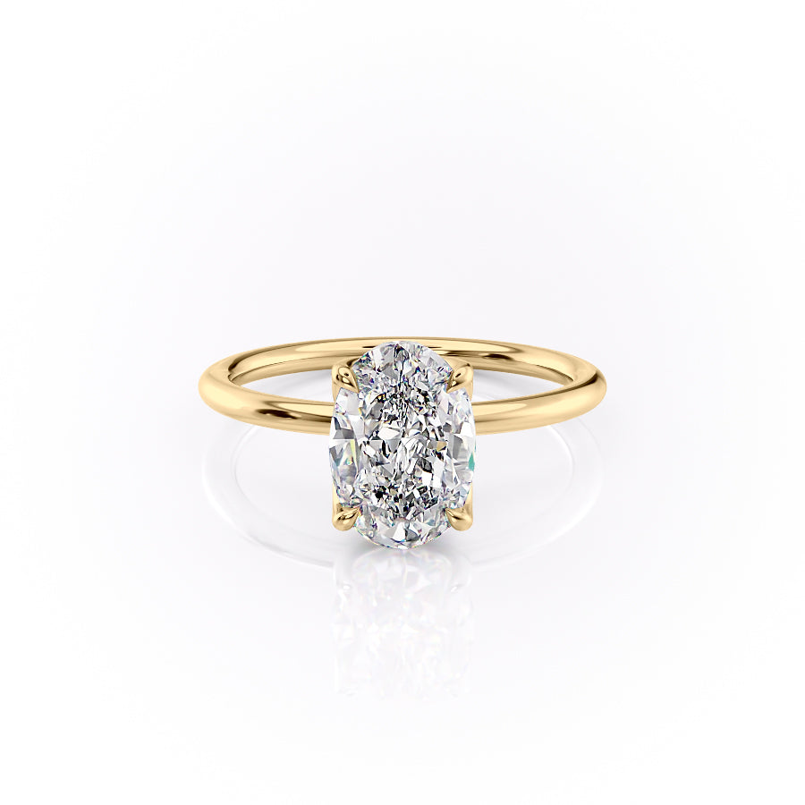 ✦ Cherish your love story with this captivating Petal Prong with Accent Stone ring, centered around a 2 - 3 CT Oval Moissanite that shimmers with brilliance.