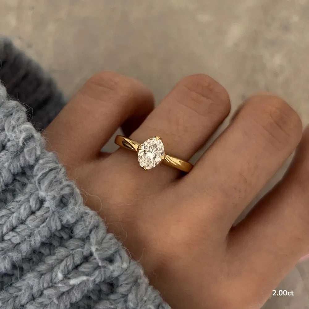 ✦ Cherish your love story with this captivating Solitaire ring with petal claws, centered around a 2 - 3 CT Oval Moissanite that shimmers with brilliance.