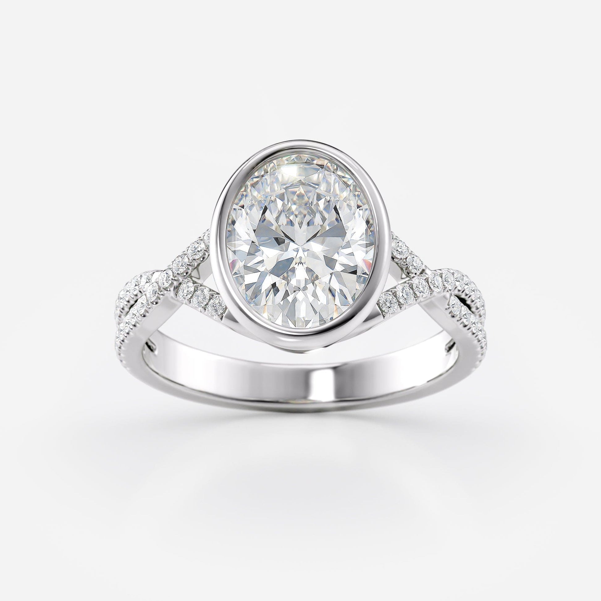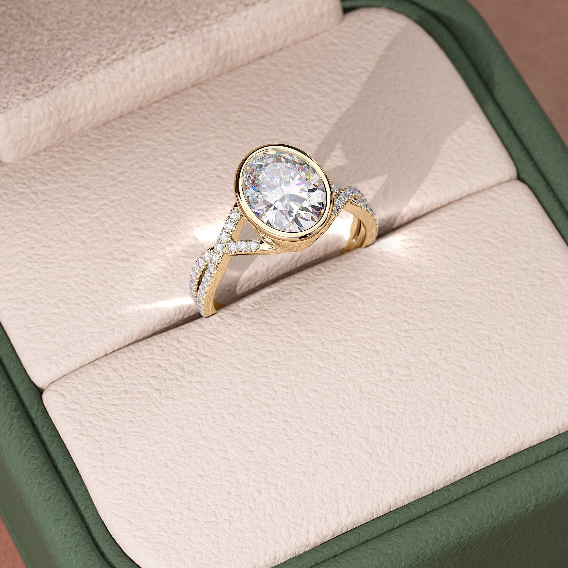 2 CT Oval Cut Twisted Pave & Bezel Setting Moissanite Engagement Ring